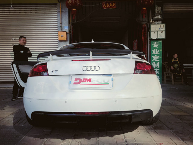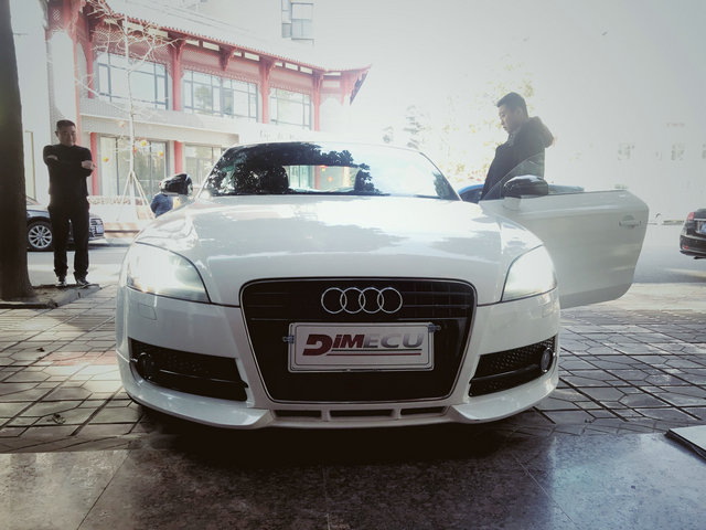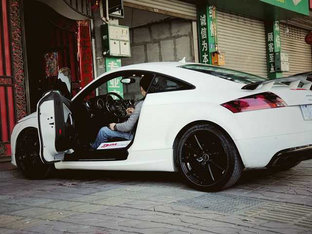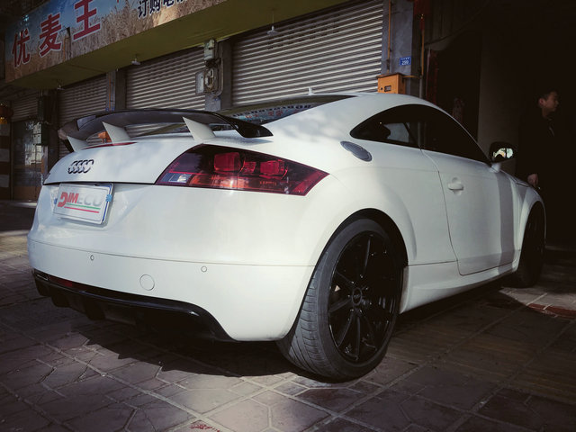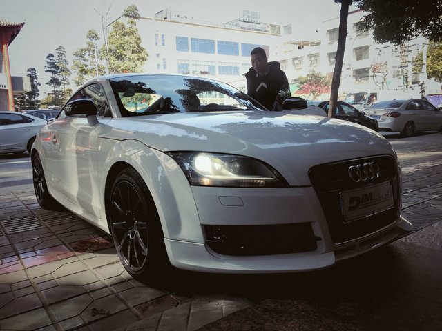 在我看見TT之后的第一感覺就是,TT更加硬朗了,銳利的頭燈和巨大的六邊形進氣格柵讓它顯得更加“爺們”,它給人的感覺就像一輛小號的R8。