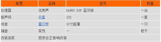 在使用榮茂隔音材料對(duì)汽車(chē)的前門(mén)板做了雙層的隔音處理之后,南京音樂(lè)人生的改裝技師將汽車(chē)的前聲場(chǎng)喇叭替換成了丹麥丹拿232套裝,它的中低音單元使用了鋁盆架一體化中低音單元,高音單元使用的是絲膜球頂高音,這讓其播放出來(lái)的音樂(lè)層次感分明,保真效果理想。為了增加音響系統(tǒng)的聽(tīng)音氛圍,改裝技師還為汽車(chē)添加了一只雷貝琴10寸超薄有源低音。