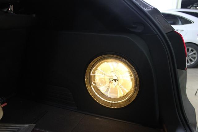 為了滿足車主要求不占車內(nèi)多余的空間,改裝師們選擇低音倒模在后備箱。倒模是為了更加美觀,還不占車內(nèi)空間。再加上動感的彩燈圍繞低音倒模箱體使豪客MS104低音看起來更加動感,絢麗,時尚。