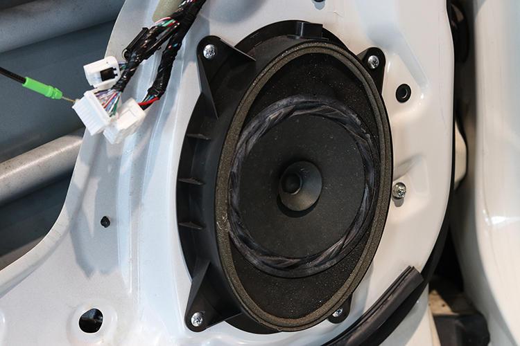 隨后將黃金聲學(xué)GE65同軸喇叭安裝在后門(mén)板,這款喇叭播放的音樂(lè)層次感很強(qiáng),音質(zhì)優(yōu)美細(xì)膩,樂(lè)曲和人聲的演繹十分出色到位。在每一個(gè)細(xì)節(jié)設(shè)計(jì)上,黃金聲學(xué)GE65同軸喇叭都能體現(xiàn)出一種獨(dú)特的魅力,在音質(zhì)的表現(xiàn)上,GE65相比同價(jià)位的喇叭絕對(duì)屬于領(lǐng)先水準(zhǔn)。前門(mén)和后門(mén)的兩款喇叭完美搭配,讓車(chē)廂內(nèi)舞臺(tái)感更加強(qiáng)烈。