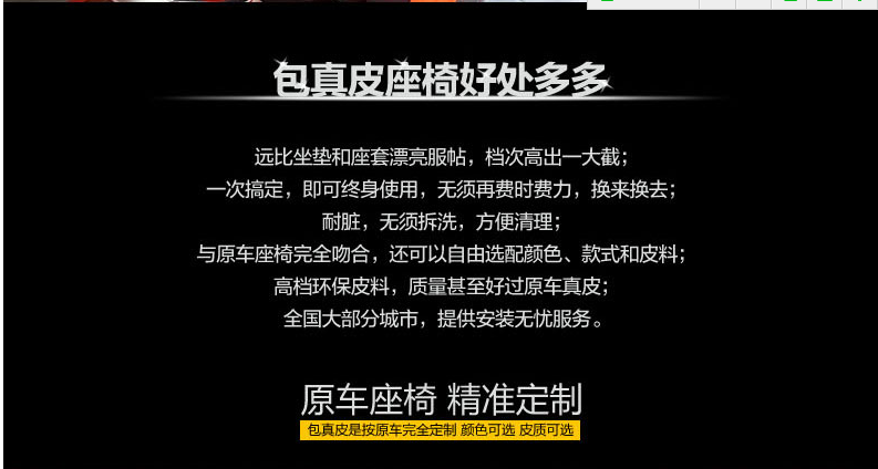 細(xì)膩、和諧,同中求異的汽車內(nèi)飾改裝同利真皮內(nèi)飾系列產(chǎn)品,全部使用進(jìn)口真皮,享譽(yù)深圳,企業(yè)更擁有一流的制作設(shè)備和技術(shù)才能,以及來(lái)自全國(guó)杰出的產(chǎn)品研發(fā)精英國(guó)際一流的內(nèi)飾設(shè)計(jì)專才,針對(duì)各種車型。產(chǎn)品設(shè)計(jì)集各國(guó)文化精髓之大成,實(shí)用與審美的創(chuàng)造結(jié)合。