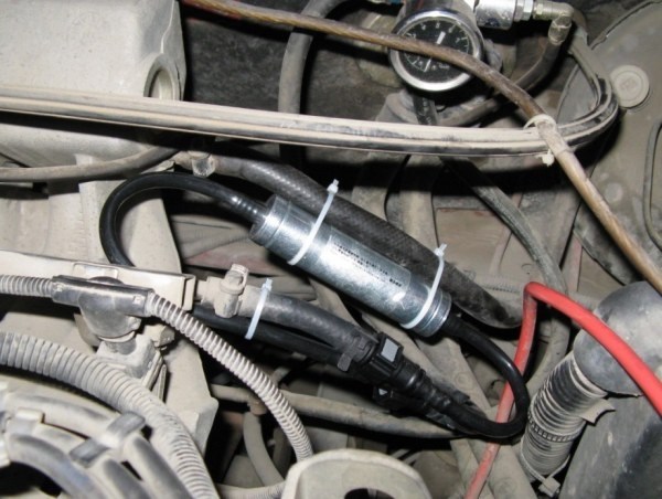 找到發(fā)動(dòng)機(jī)進(jìn)油管,距發(fā)動(dòng)機(jī)8厘米處截?cái)啵唤財(cái)嘁部梢?,廠家會(huì)給配好一段滴,這里我就給省了,裝上快速接頭