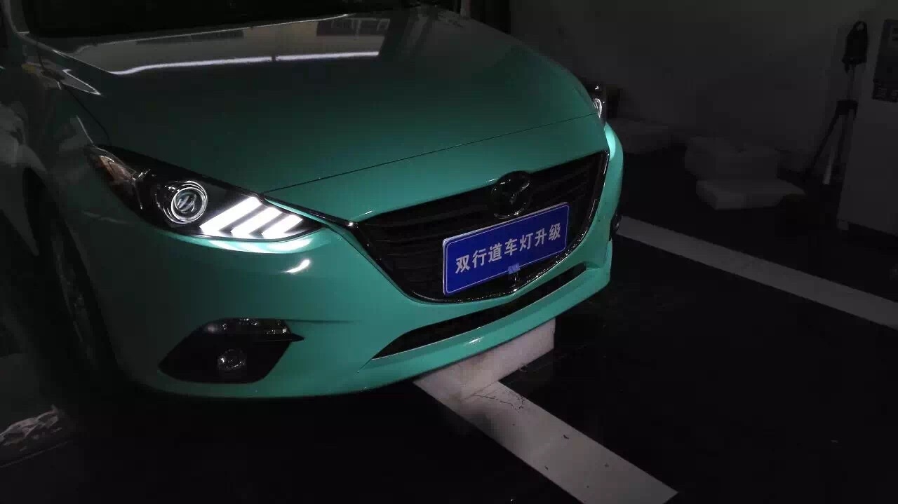昂克塞拉改裝野馬款大燈總成,野馬款大燈搭配極具野性以及狂妄不羈的個性,帶有日間行車燈,以及非常醒目的流光轉(zhuǎn)向燈!