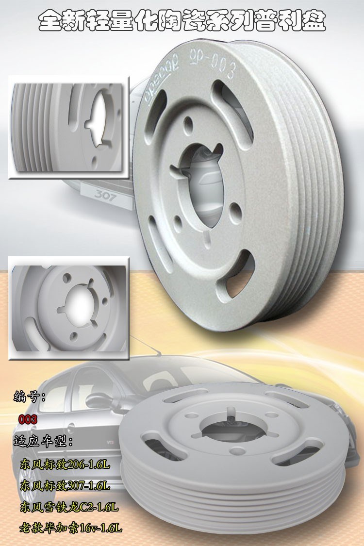 輕量化皮帶盤就是大家說(shuō)的“普利盤”,就在引擎的前端。作用就是連接曲軸,帶