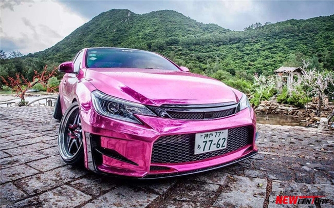 其中,GRMN改裝豐田銳志,粉紅的貼膜加上個(gè)性的輪轂,配上GRMN量身打造的車身套件
