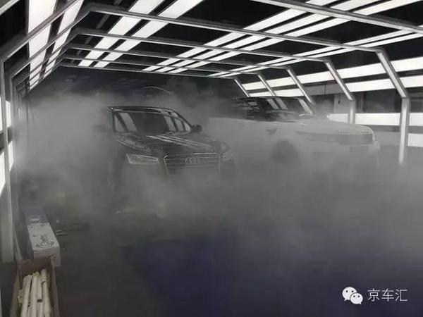 這是在干嘛?好大的霧氣!看起來猶如人間仙境一般;錄視頻!奧迪 A8京車匯隱形車衣標準施工車間進行施工;這個景象,隔斷了眾人與我的是漫車間的霧化。