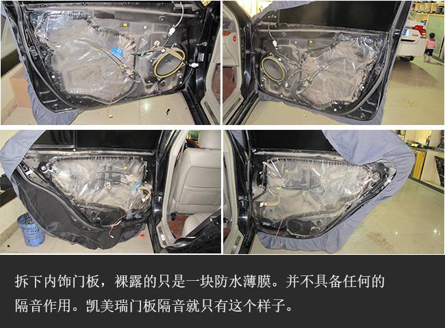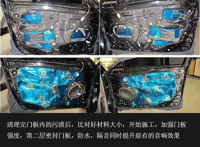 在車(chē)主的要求下搭配了一套經(jīng)濟(jì)性的門(mén)板隔音,四門(mén)獅龍雙層隔音。