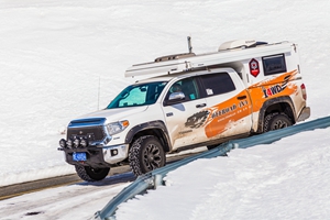 速騰坦途4x4穿越房車是速騰房車為廣大越野、攝影愛好者精心研發(fā)的一款可在無人之境直來直往的旅行利器。它以美國原裝進口豐田坦途皮卡車為原型, 配備5.7L V8發(fā)動機,381馬力最大功率和481n/m峰值扭矩,6速手自一體變速箱以及帶有鎖止和超低速擋功能的四驅(qū)系統(tǒng),賦予了車輛超強越野性及高機動性;