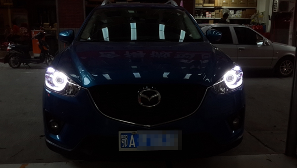 自從馬自達(dá)CX-5上市以后其年輕活潑,張力十足的外觀就受到了國內(nèi)很多年輕人的喜愛。但就跟很多原廠車一樣,車燈不太給力,實(shí)在有點(diǎn)對不起他20幾萬的身價。為了解決這一問題,馬上找到當(dāng)?shù)氐能嚐舾难b機(jī)構(gòu)進(jìn)行車燈改裝升級,加裝氙氣燈和透鏡天使眼。