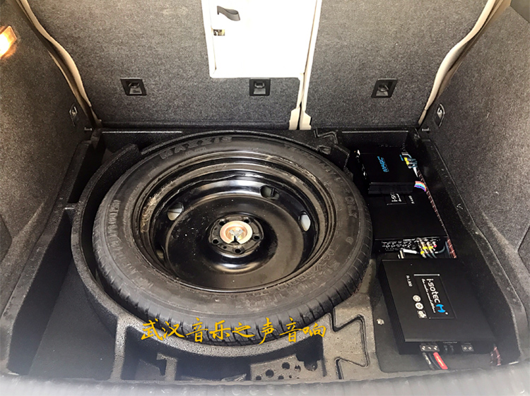 低音安裝在后備箱,后備箱復原后看不到解碼器功放的存在,一切都是在征求車主同意后進行的改裝,真正的專業(yè)!正真的無損!