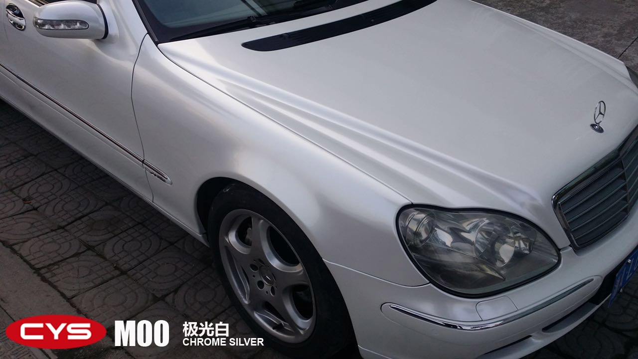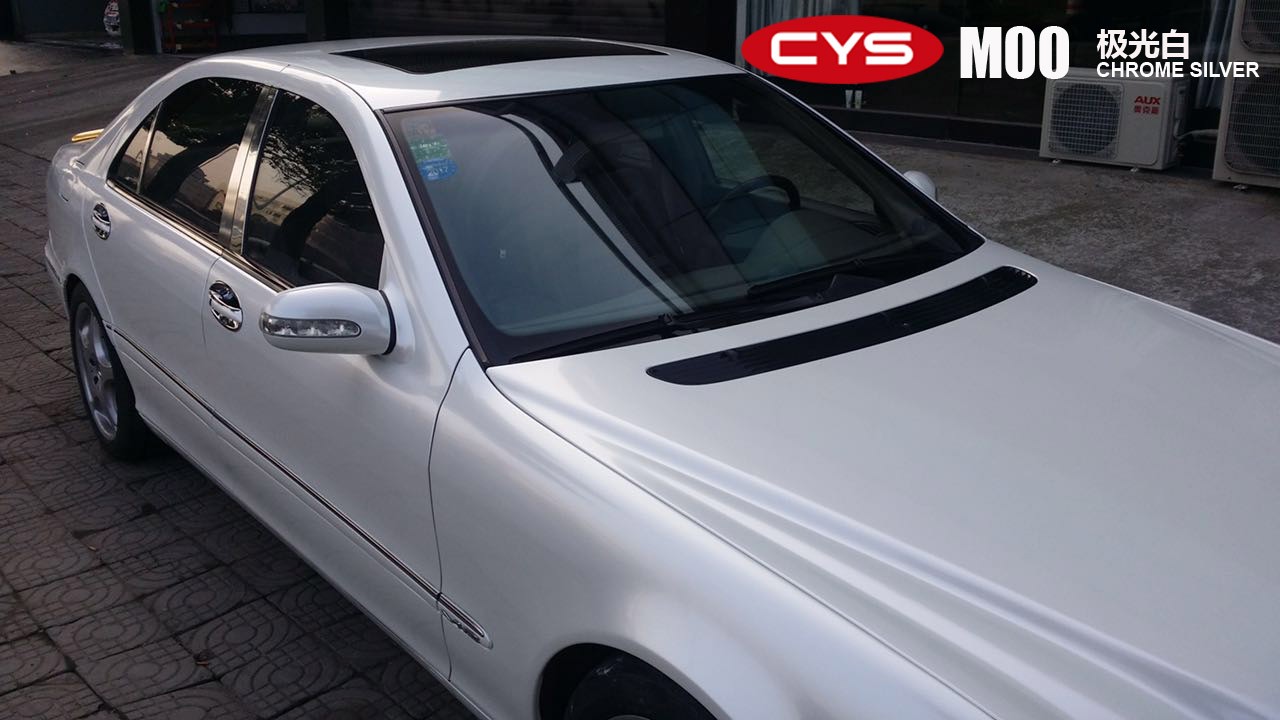 成都汽車改色奔馳S600極光白車身改色貼膜