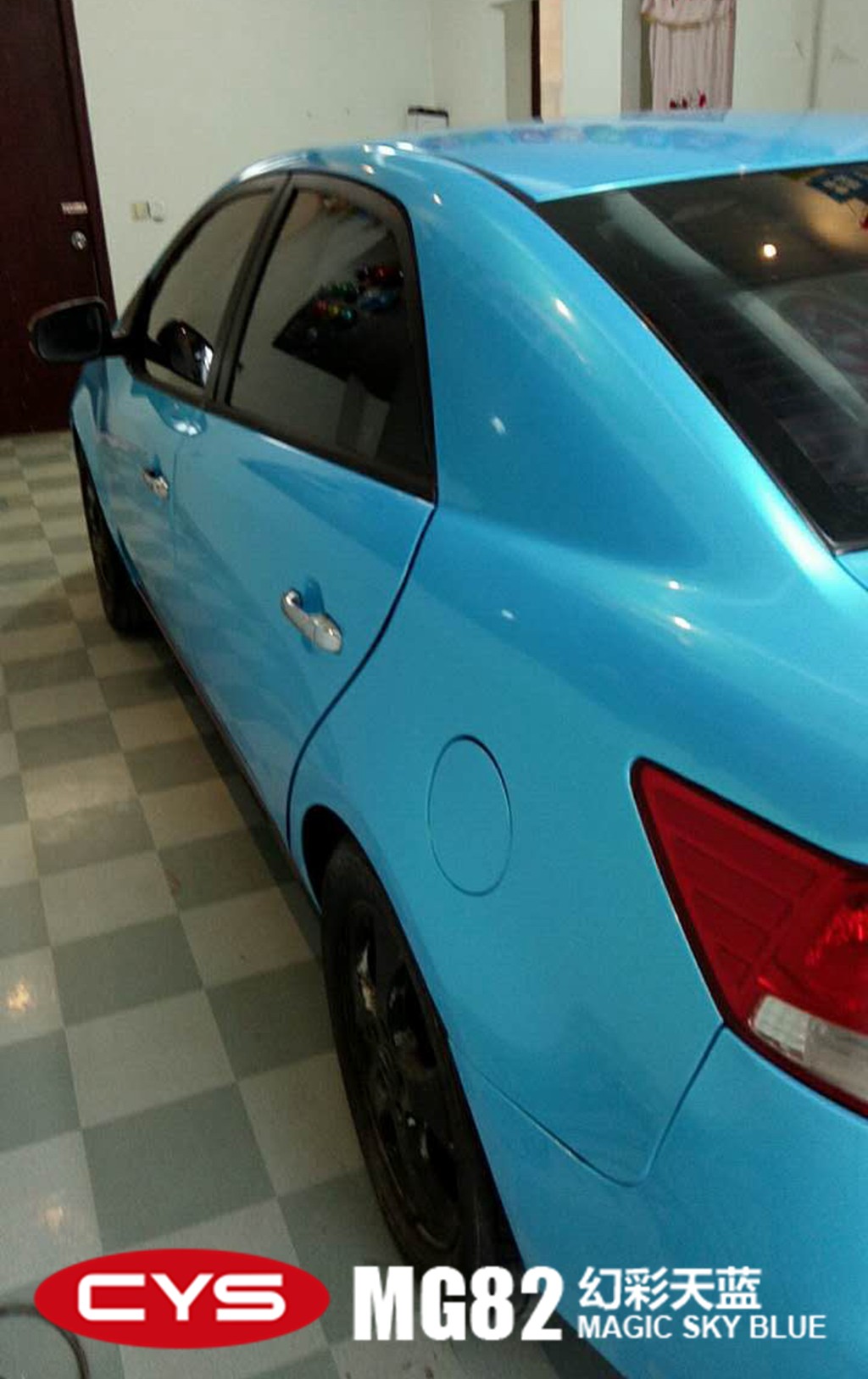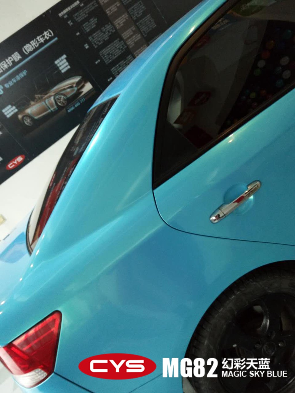 成都改色膜起亞福瑞迪幻彩天藍車身改色