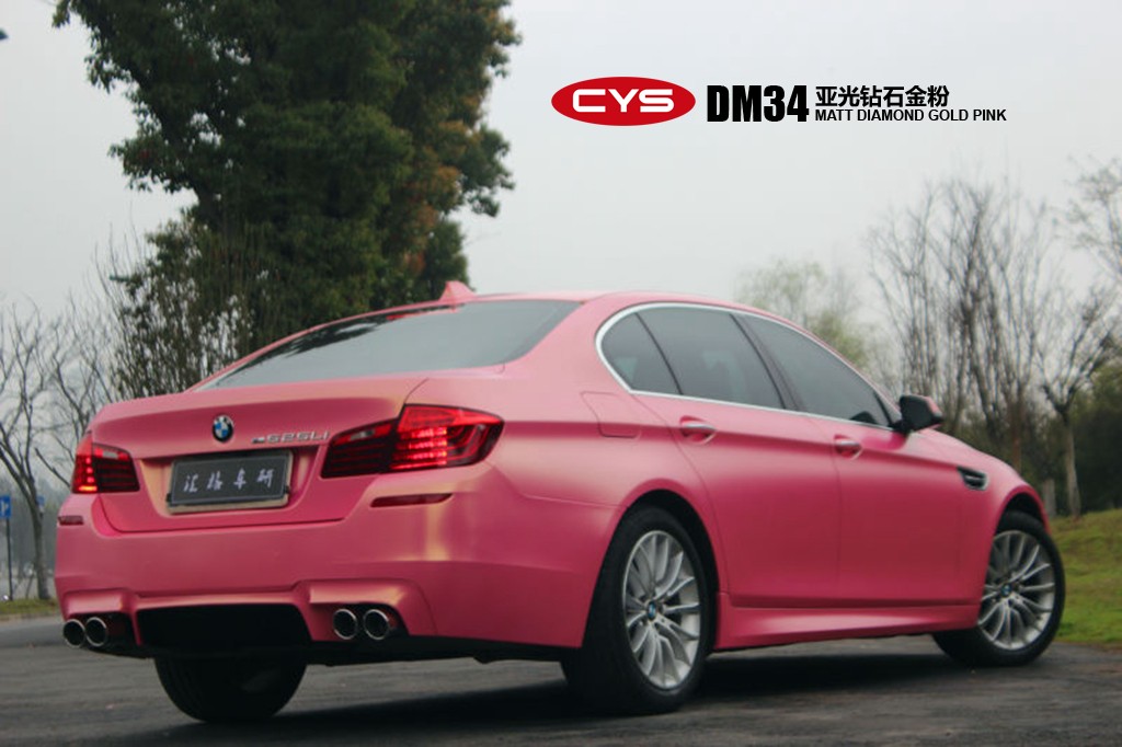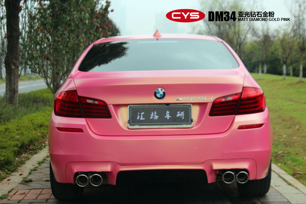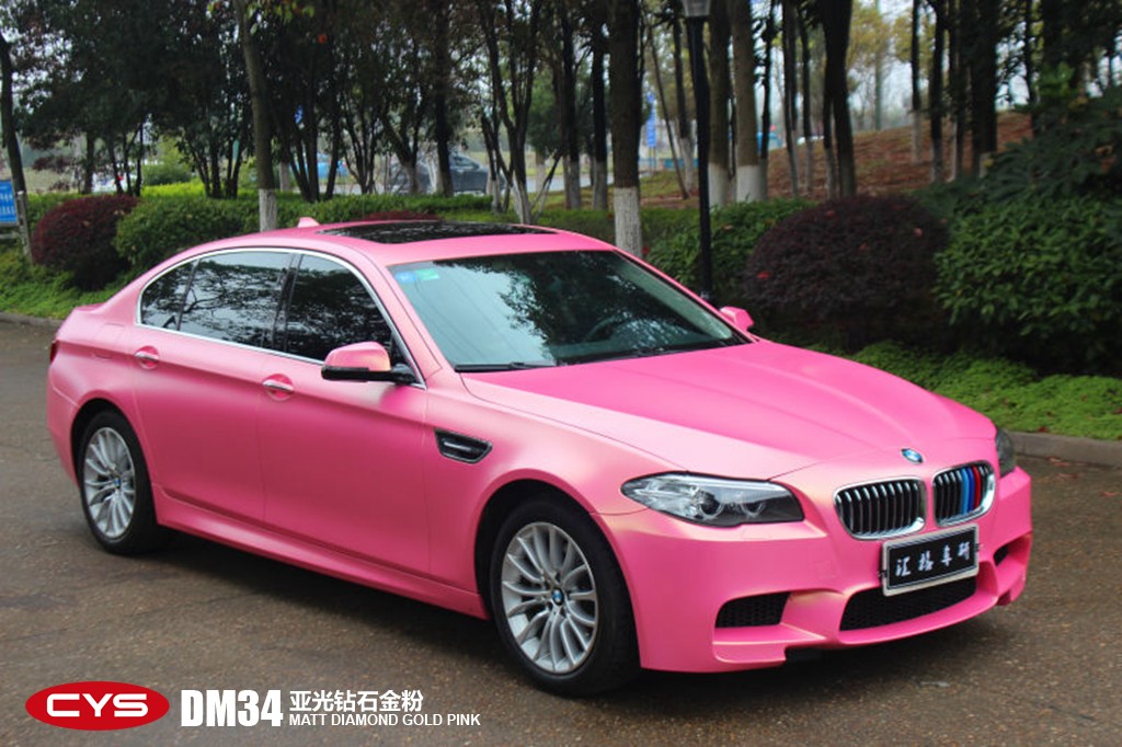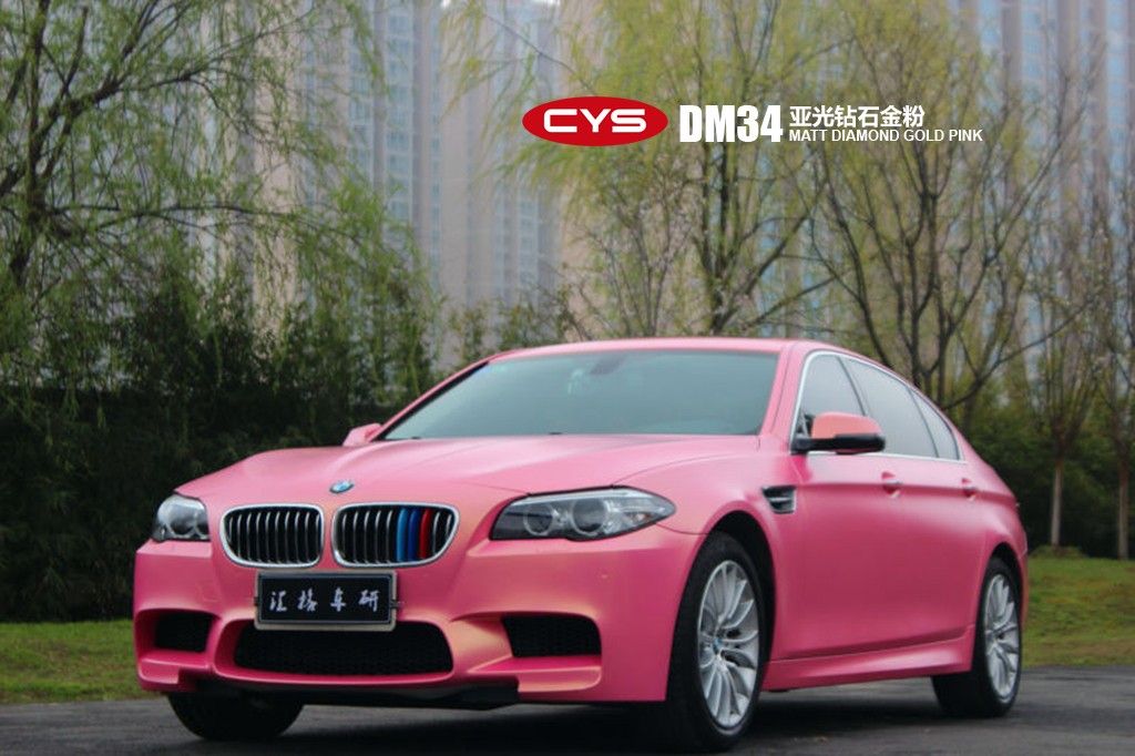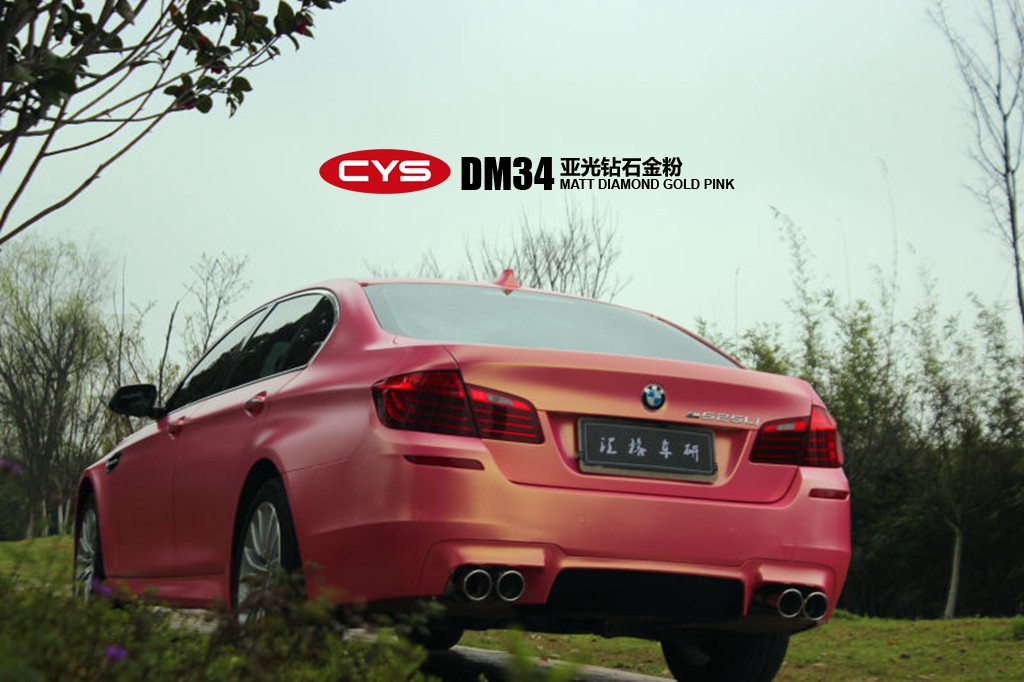 成都汽車改色貼膜寶馬525Li亞光鉆石金粉車身改色