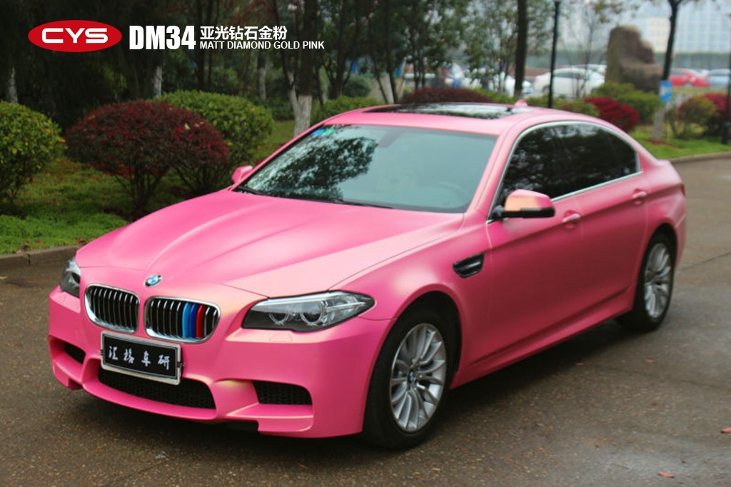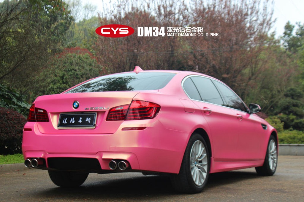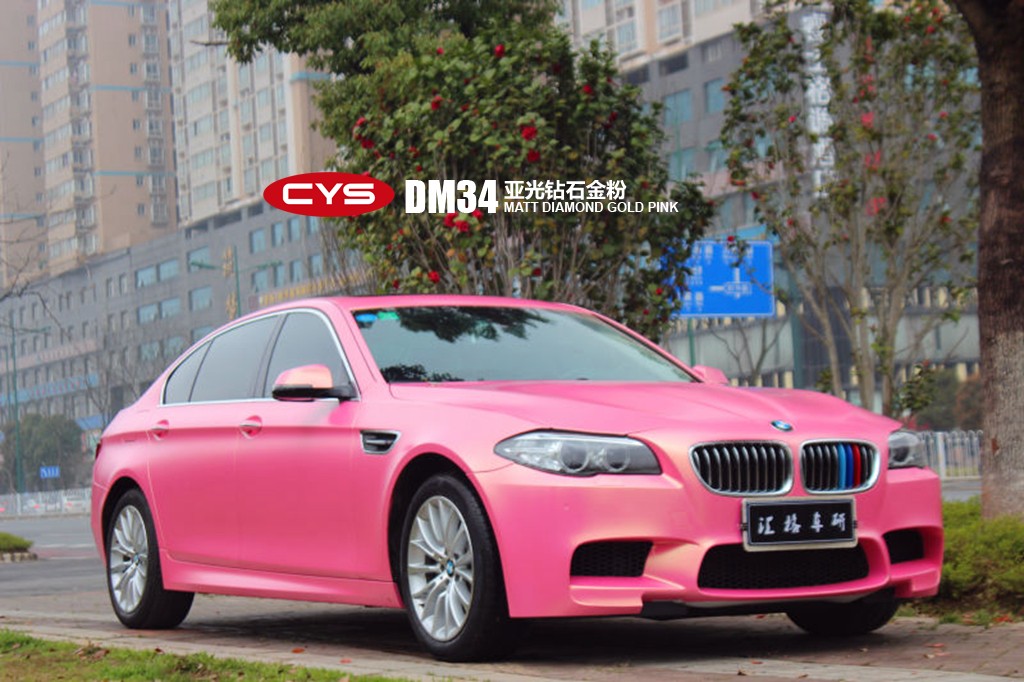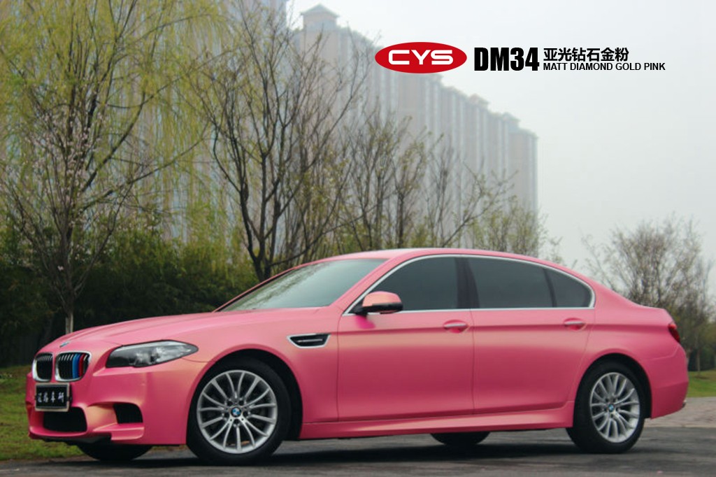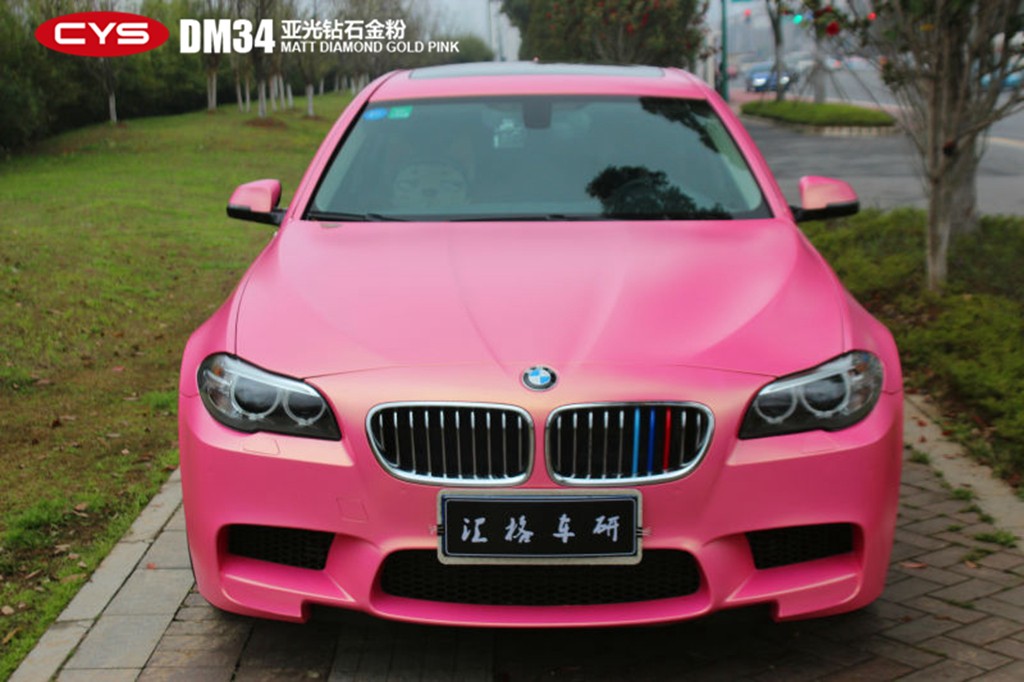 成都汽車改色貼膜寶馬525Li亞光鉆石金粉車身改色