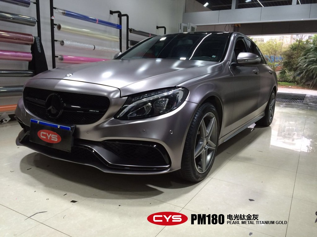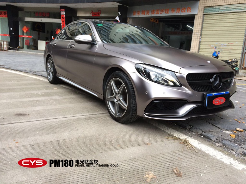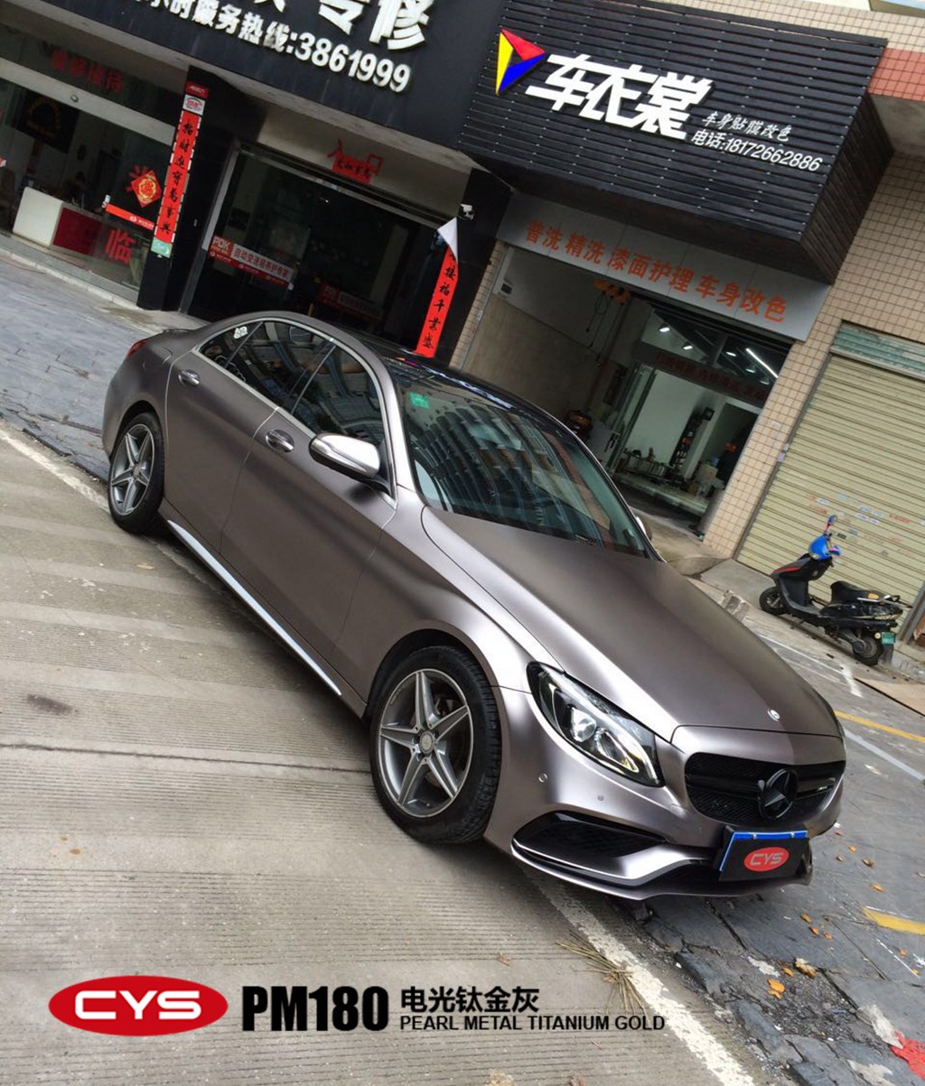 成都車衣裳奔馳C級(jí)電光鈦金灰車身改色貼膜