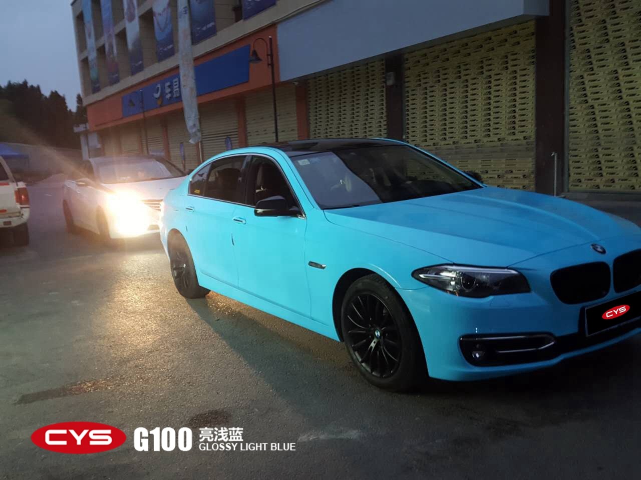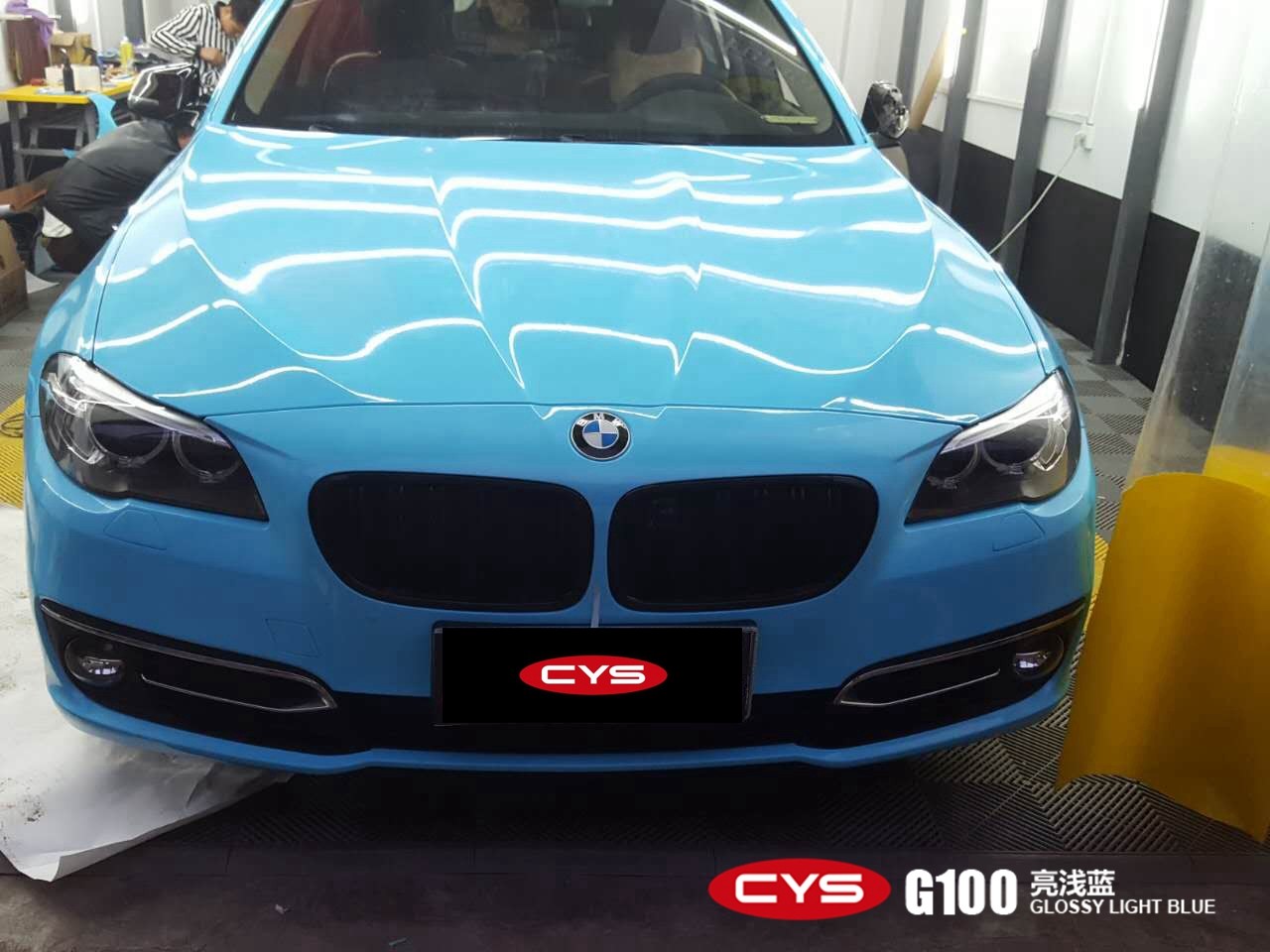 寶馬525Li亮淺藍(lán)成都車身改色貼膜