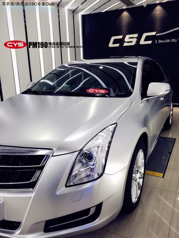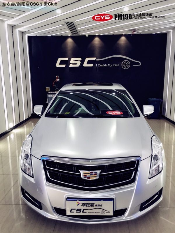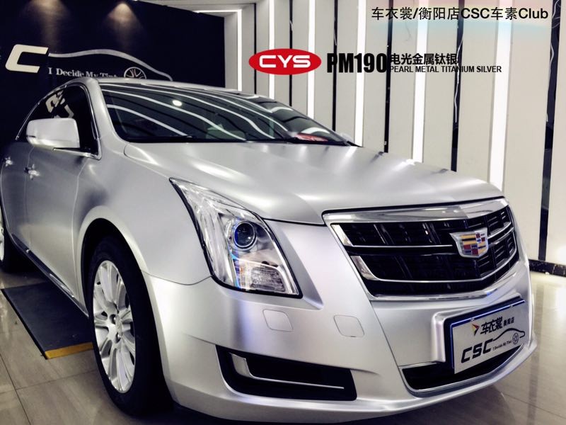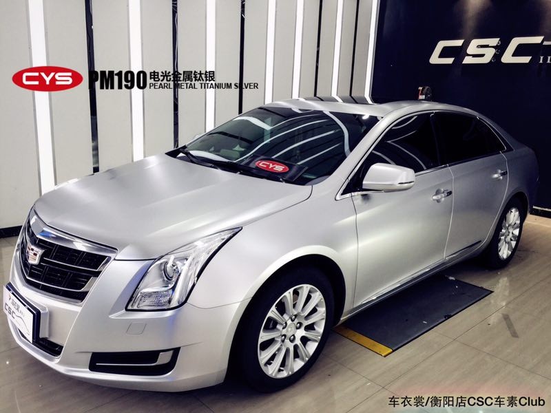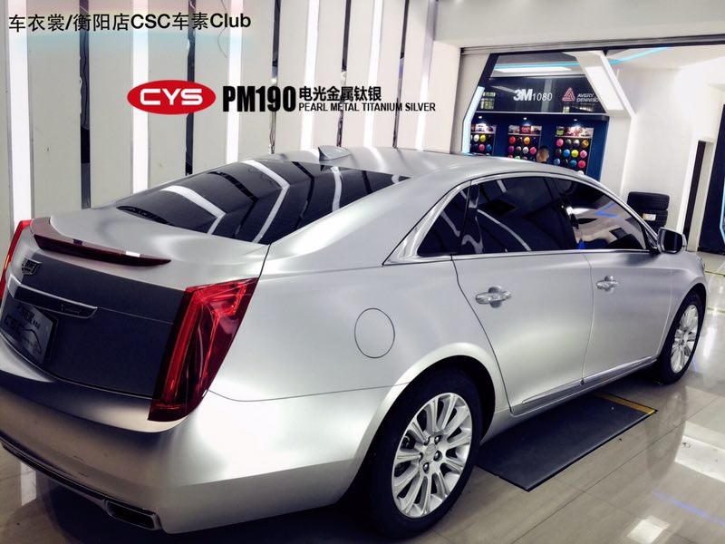 這輛凱迪拉克XTS全車換裝了CYS改色膜電光系列電光金屬鈦銀,有著200%的回頭率。