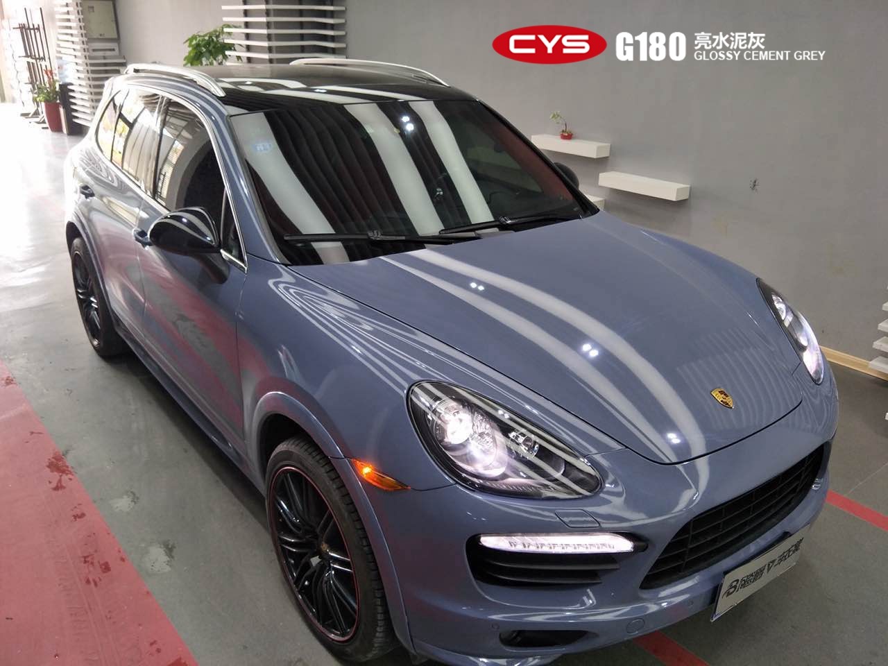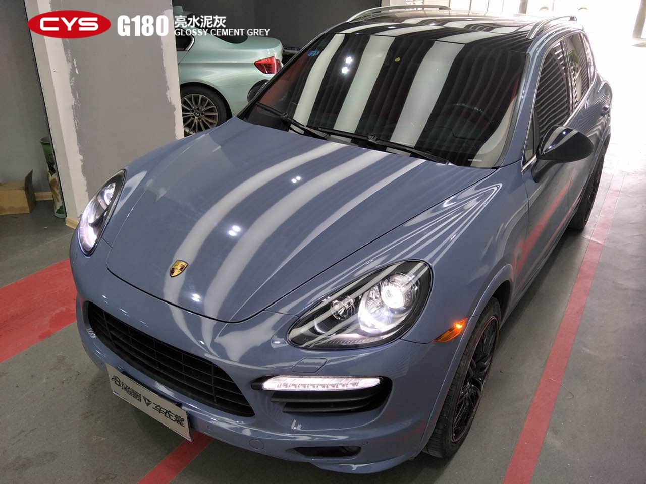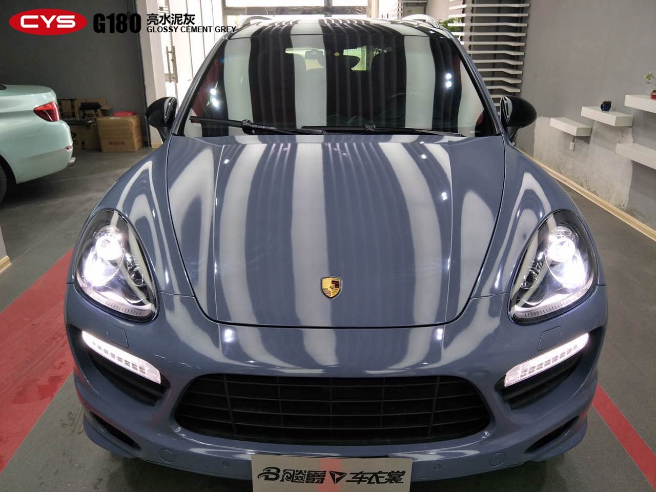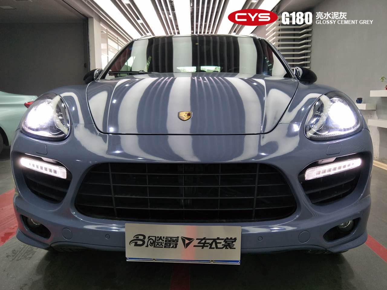 成都汽車改色保時捷卡宴亮水泥灰車身改色貼膜