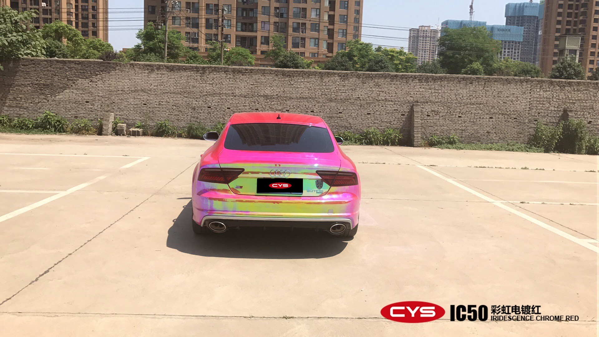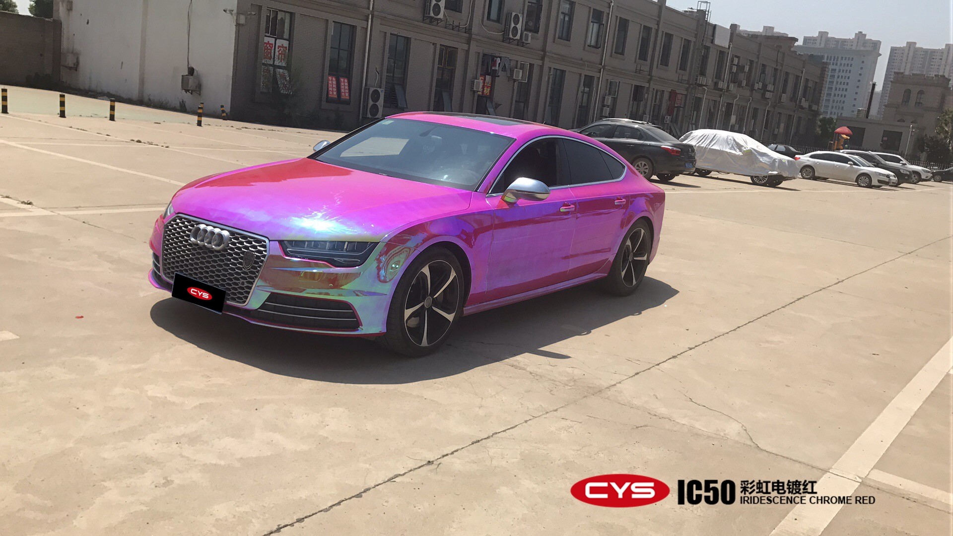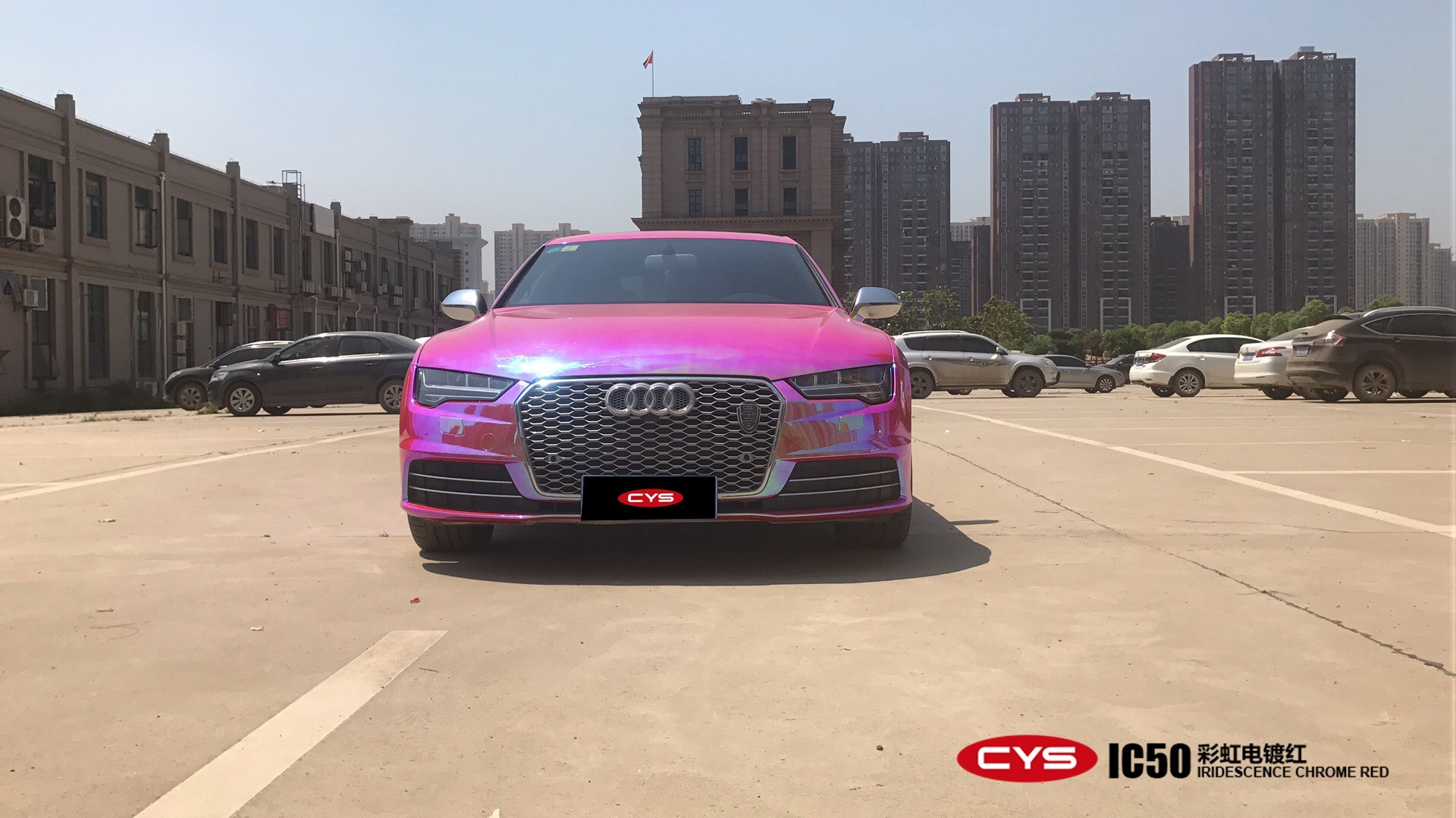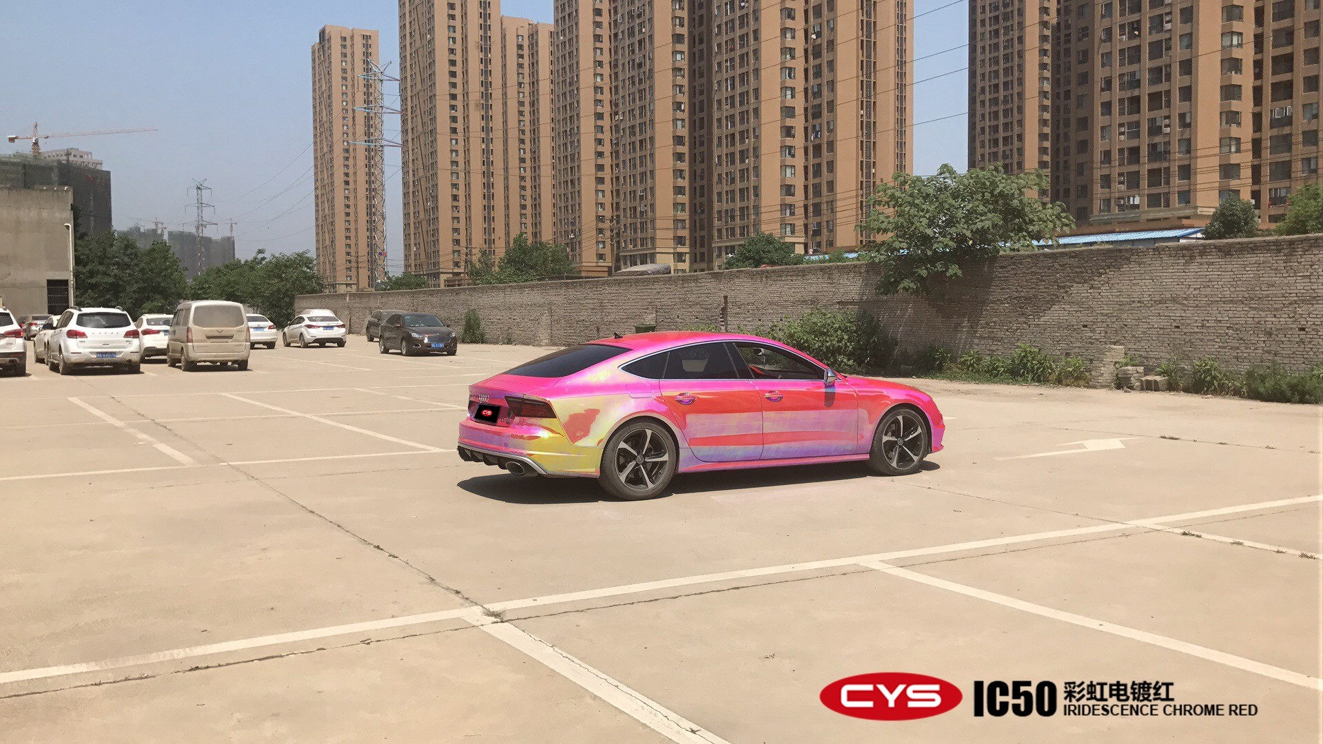 作為車界時(shí)尚圈的紅人,A7雖保有量較大,卻千篇一律!車衣裳CYS車身改色貼膜給你不一樣的美,定會(huì)讓你眼前一亮!眼前的這臺(tái)A7裝貼的是車衣裳CYS彩虹電鍍系列彩虹電鍍紅,在陽光下絢爛無比!