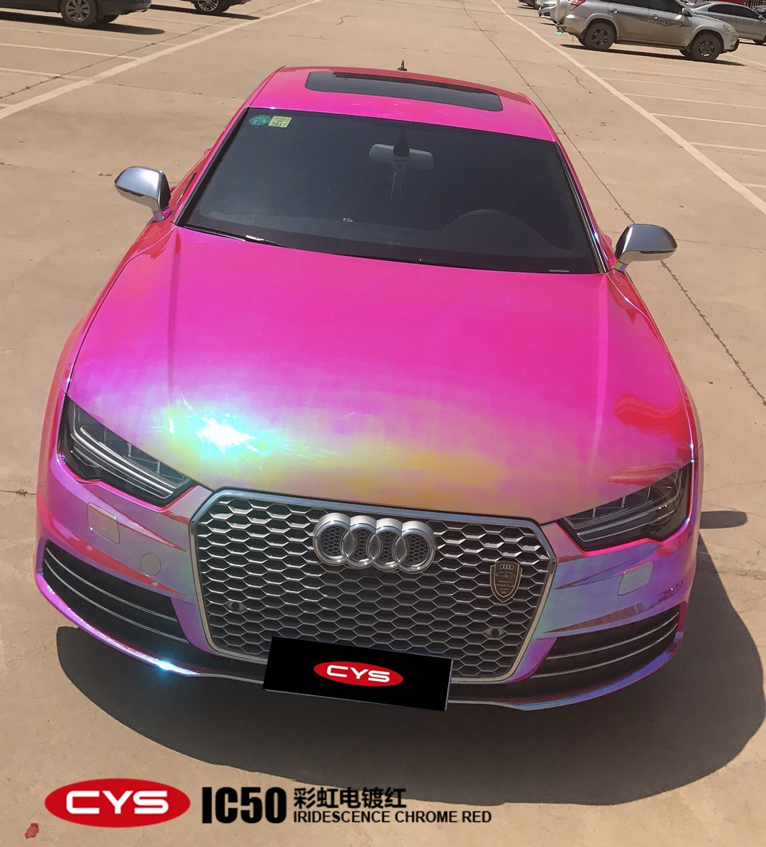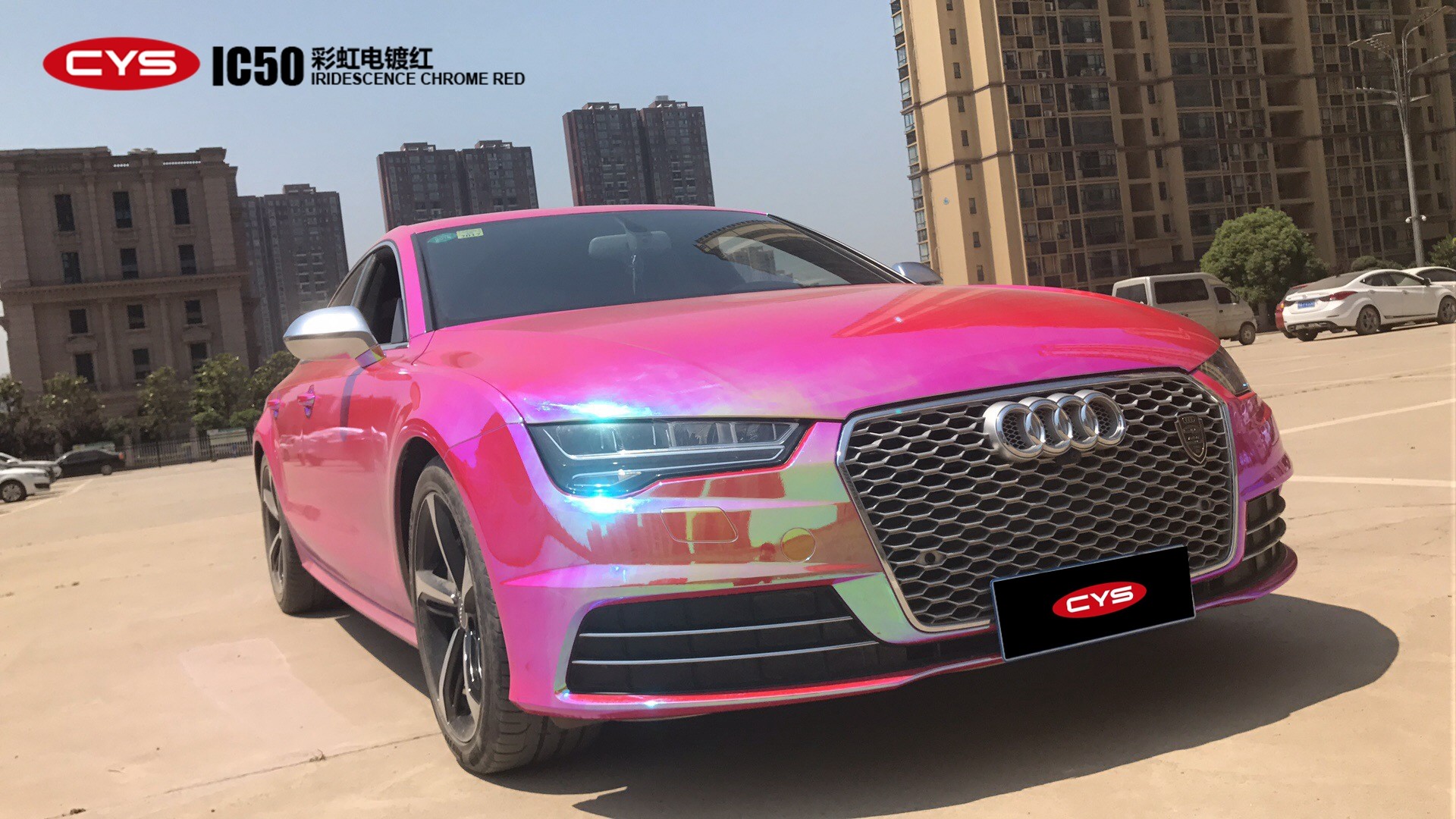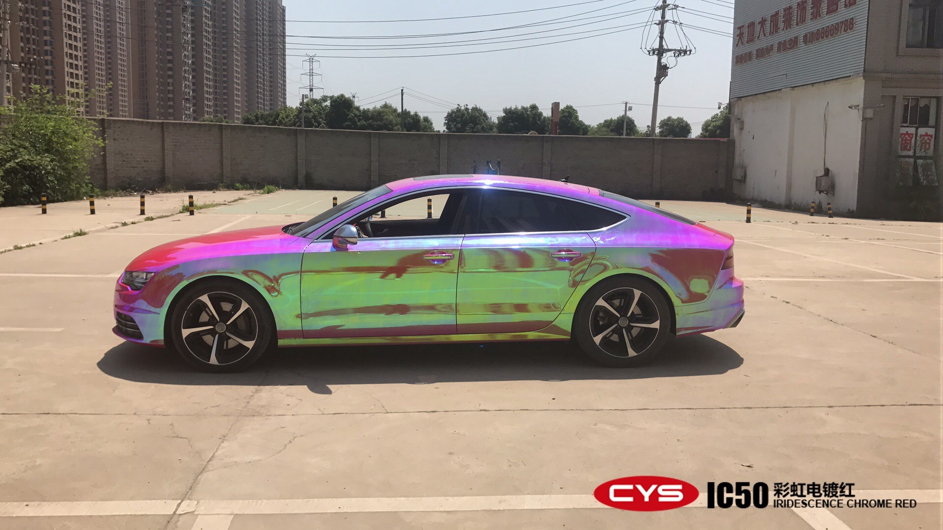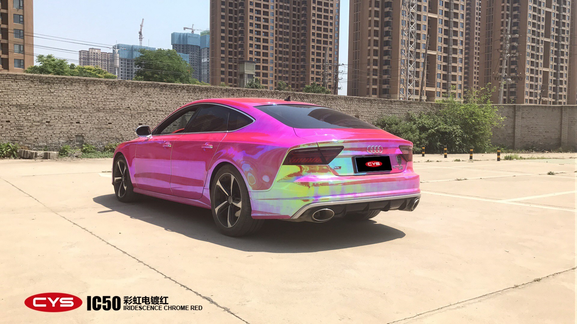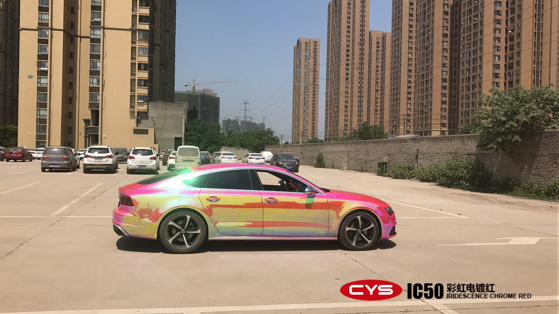 作為車界時(shí)尚圈的紅人,A7雖保有量較大,卻千篇一律!車衣裳CYS車身改色貼膜給你不一樣的美,定會(huì)讓你眼前一亮!眼前的這臺(tái)A7裝貼的是車衣裳CYS彩虹電鍍系列彩虹電鍍紅,在陽光下絢爛無比!
