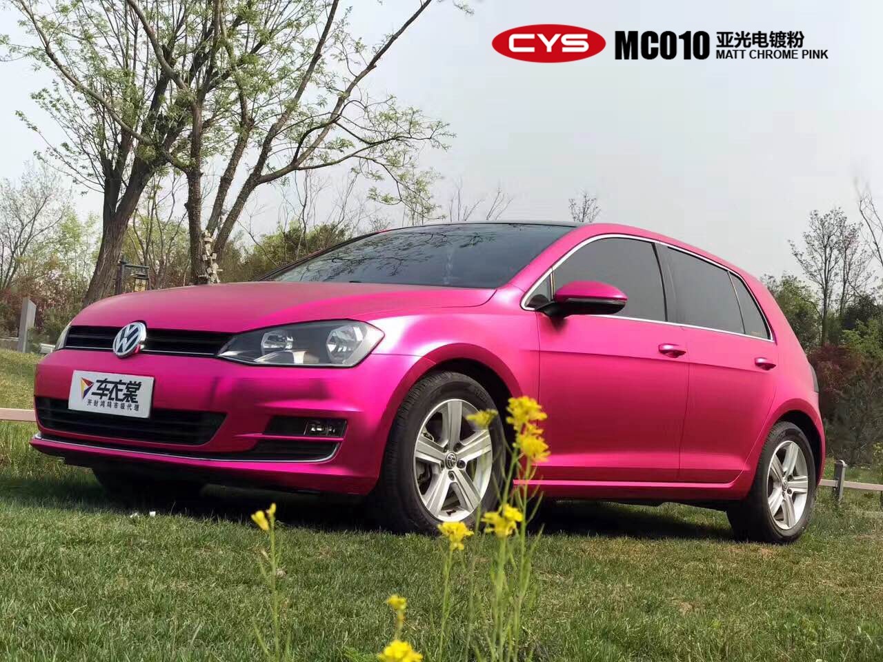 今天案例中的高爾夫7和大部分車(chē)友一樣,針對(duì)車(chē)身外觀(guān)進(jìn)行改色貼膜。該車(chē)采用車(chē)衣裳CYS亞光電鍍系列亞光電鍍粉改色膜,一看就是一位滿(mǎn)懷少女心的妹子的座駕!