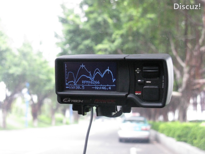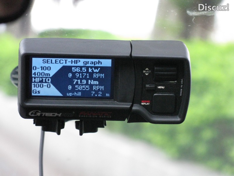 然后拿了個G-Tech來玩玩,找了段較少車路測測馬力,可能不太會操作,呵呵。數(shù)據(jù)參考一下吧。