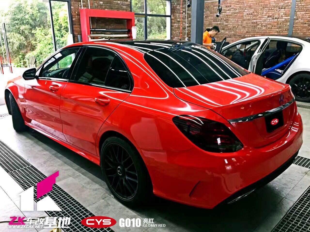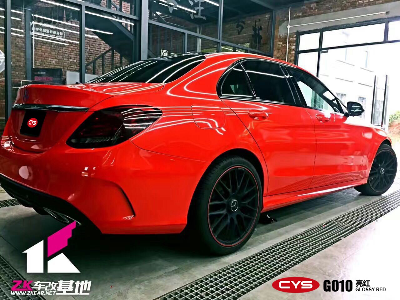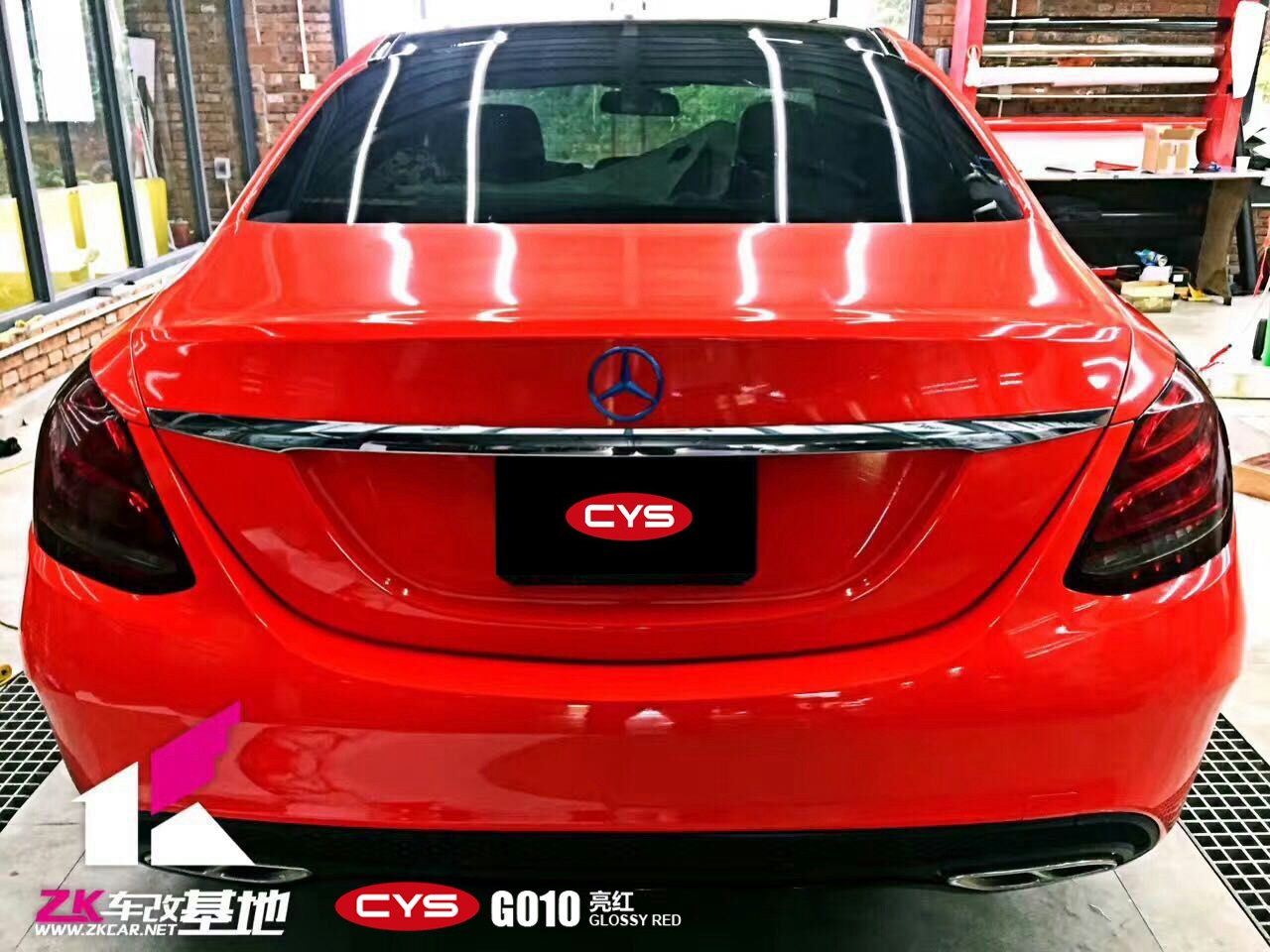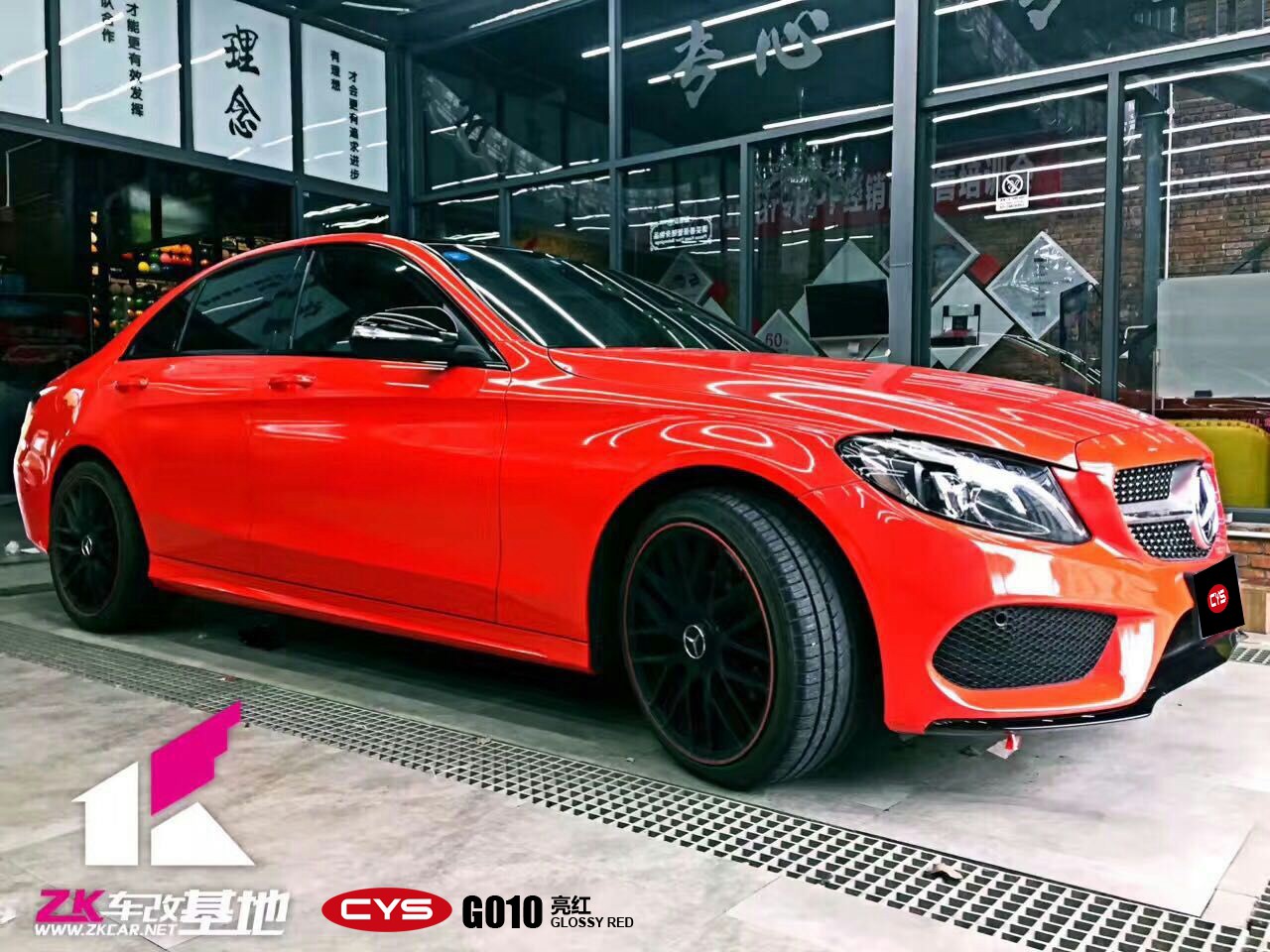 成都車衣裳奔馳C200亮紅車身改色貼膜