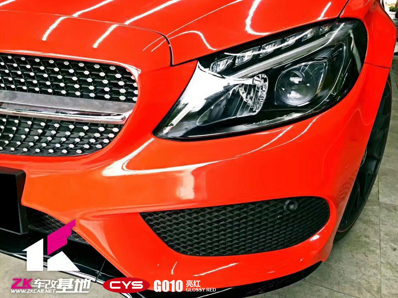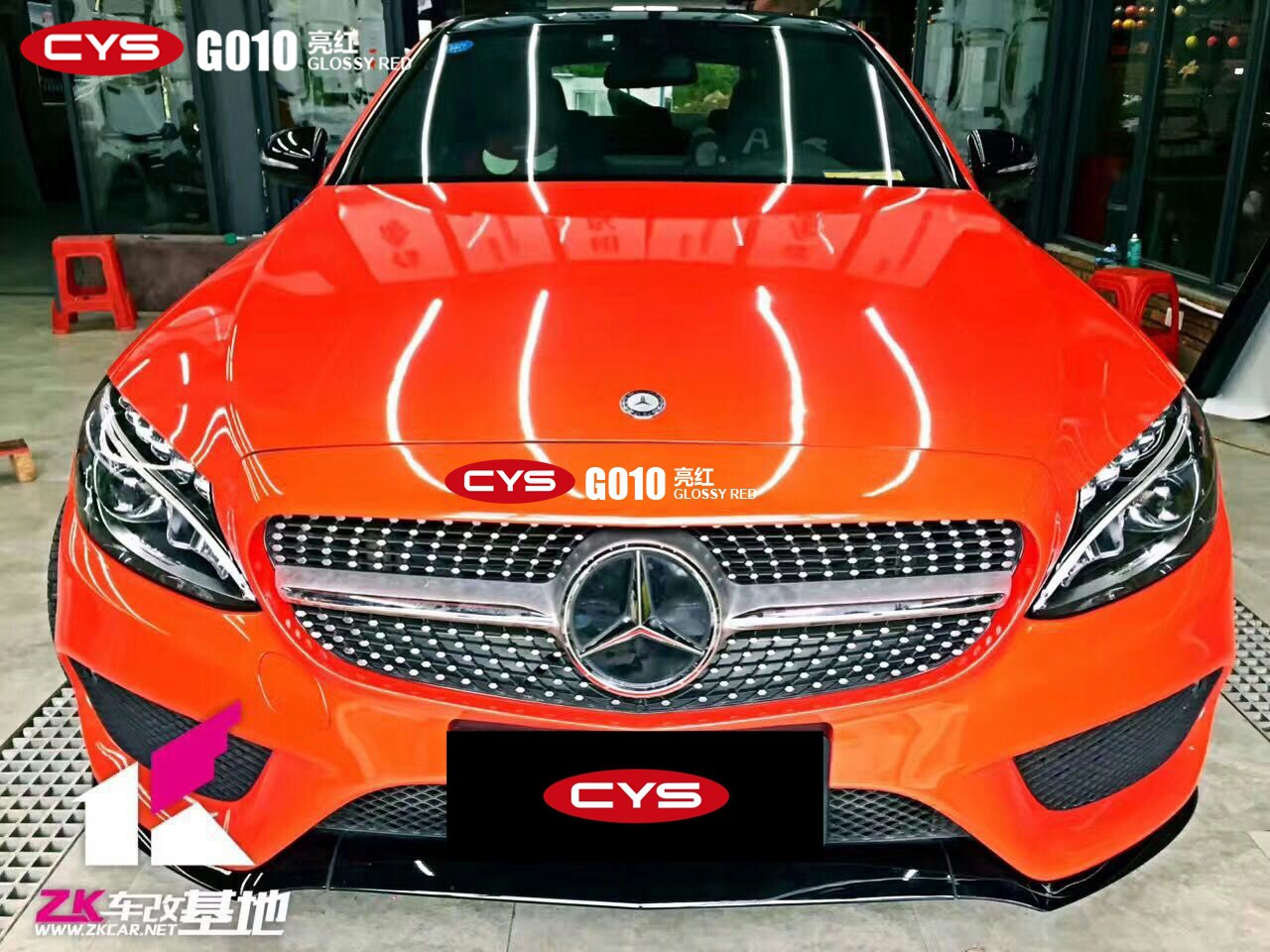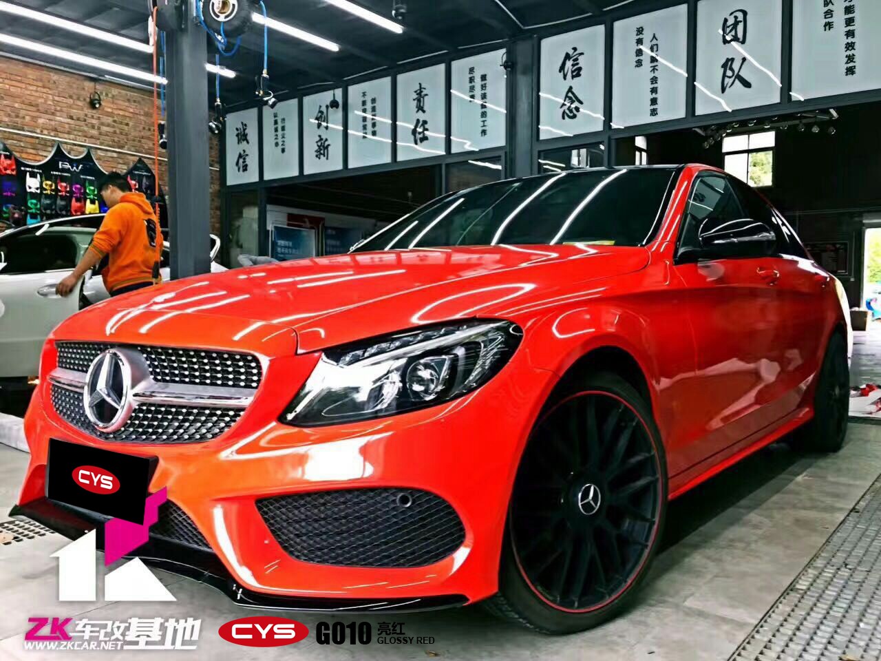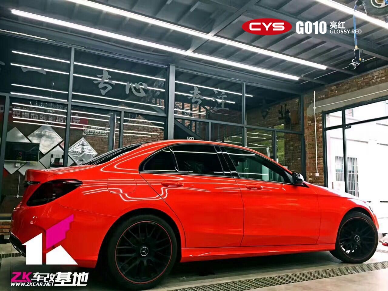 成都車衣裳奔馳C200亮紅車身改色貼膜