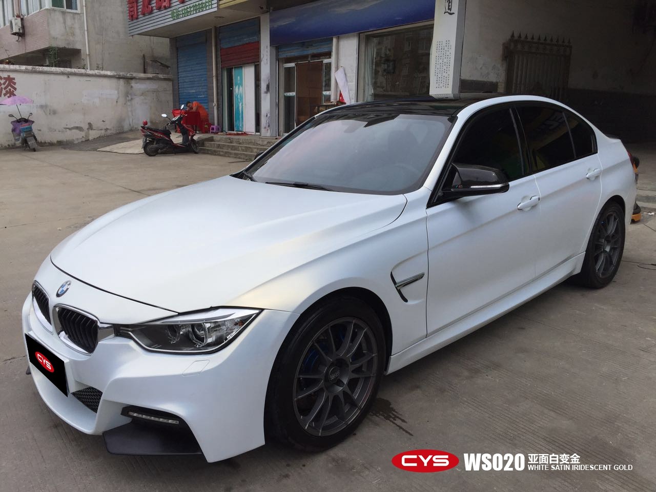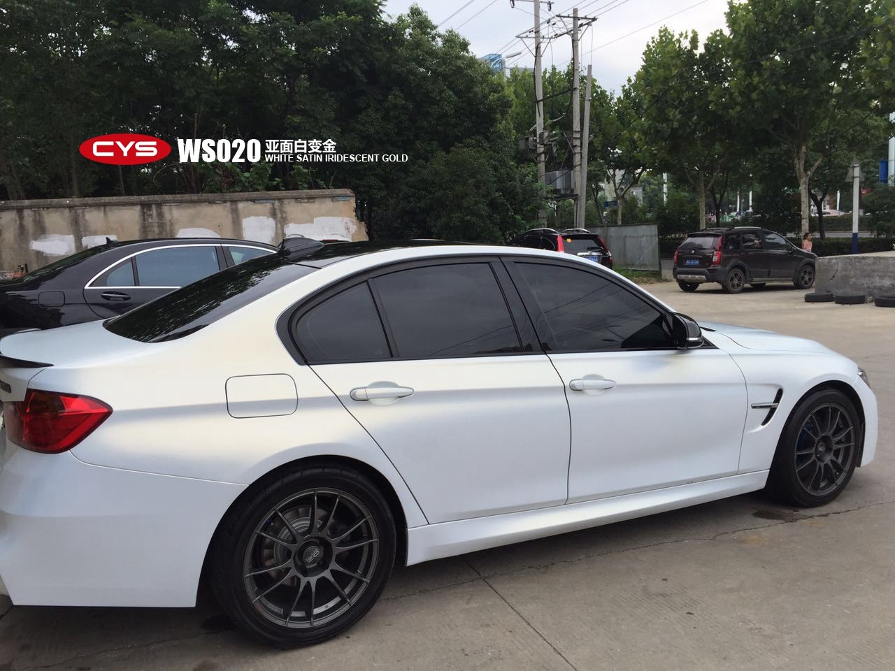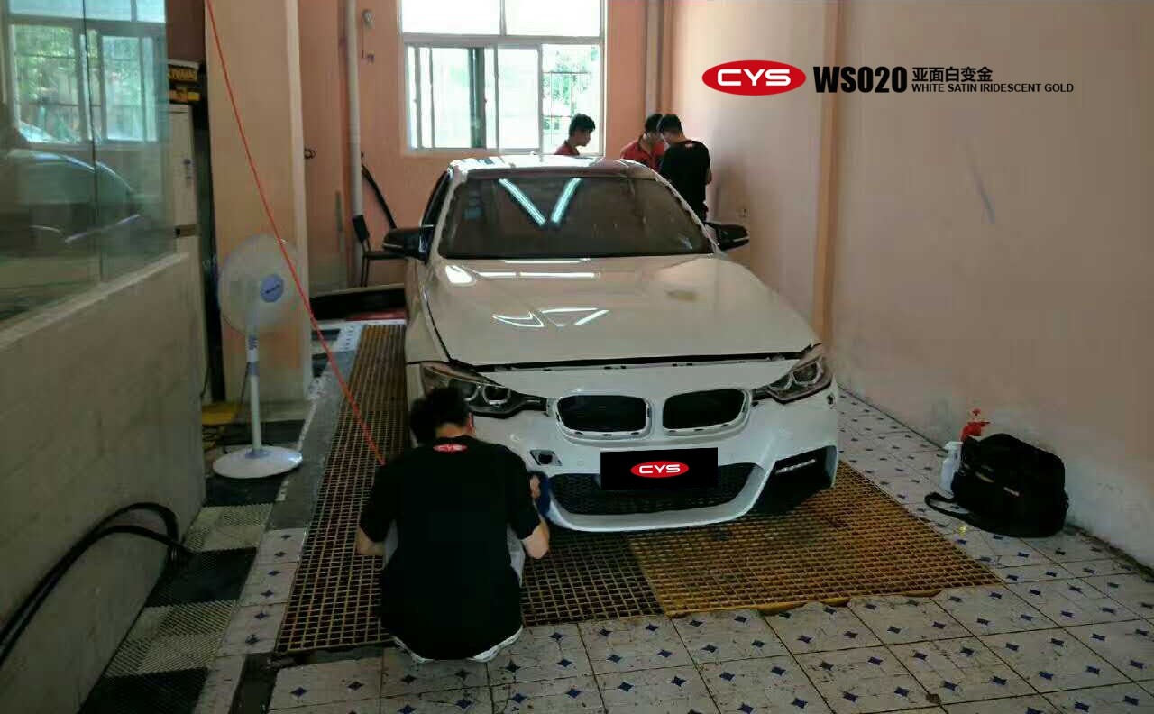 成都汽車改色貼膜寶馬3系亞面白變金
