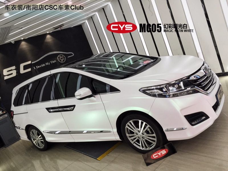 成都車衣裳田艾力紳幻彩曙光白車身改色貼膜
