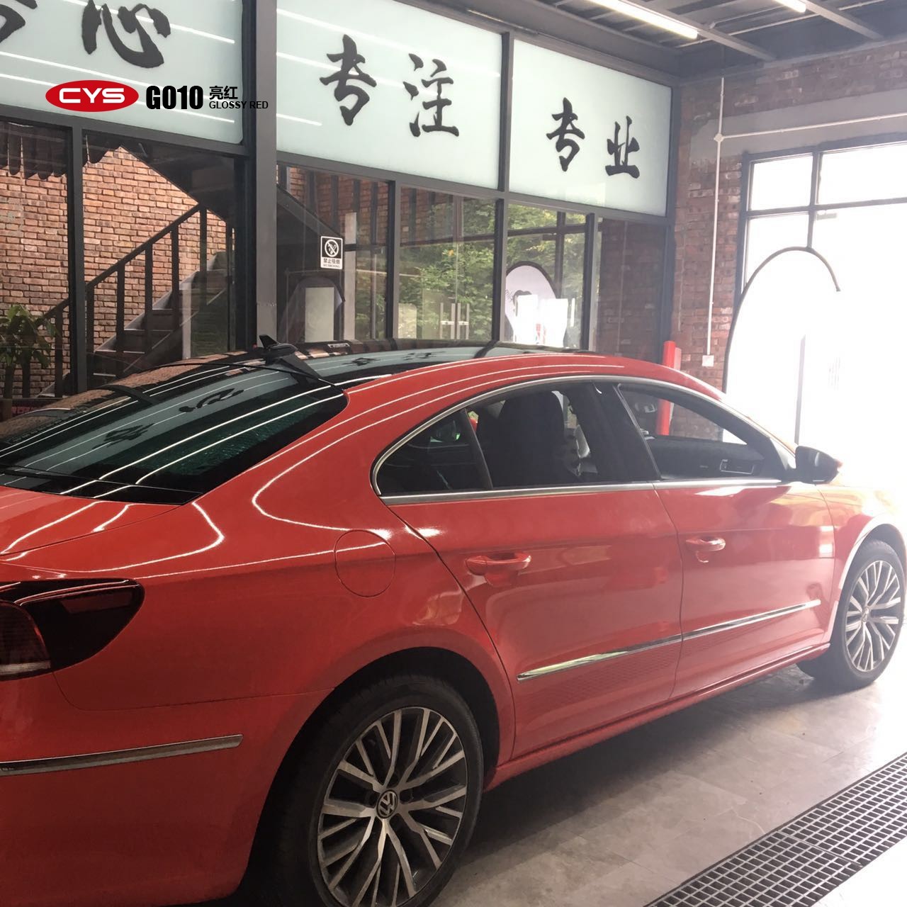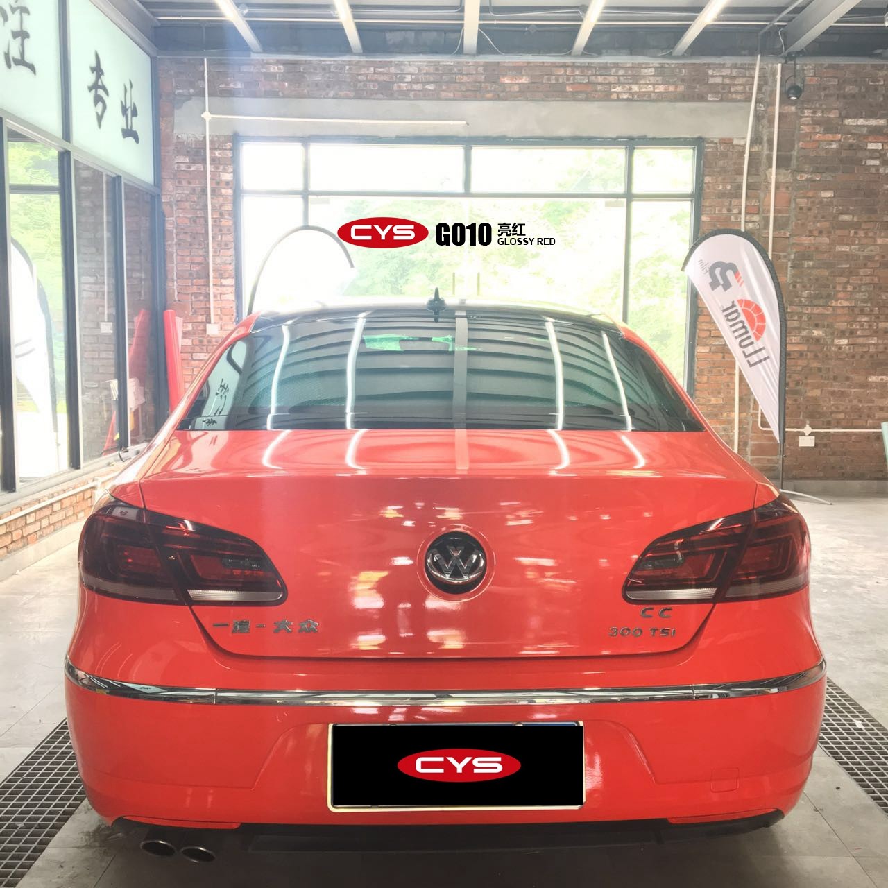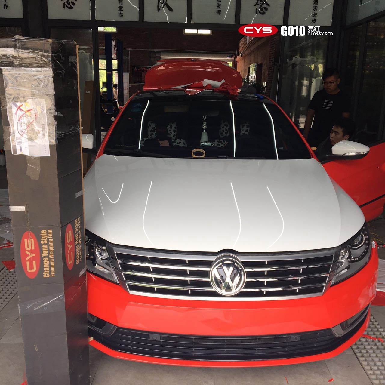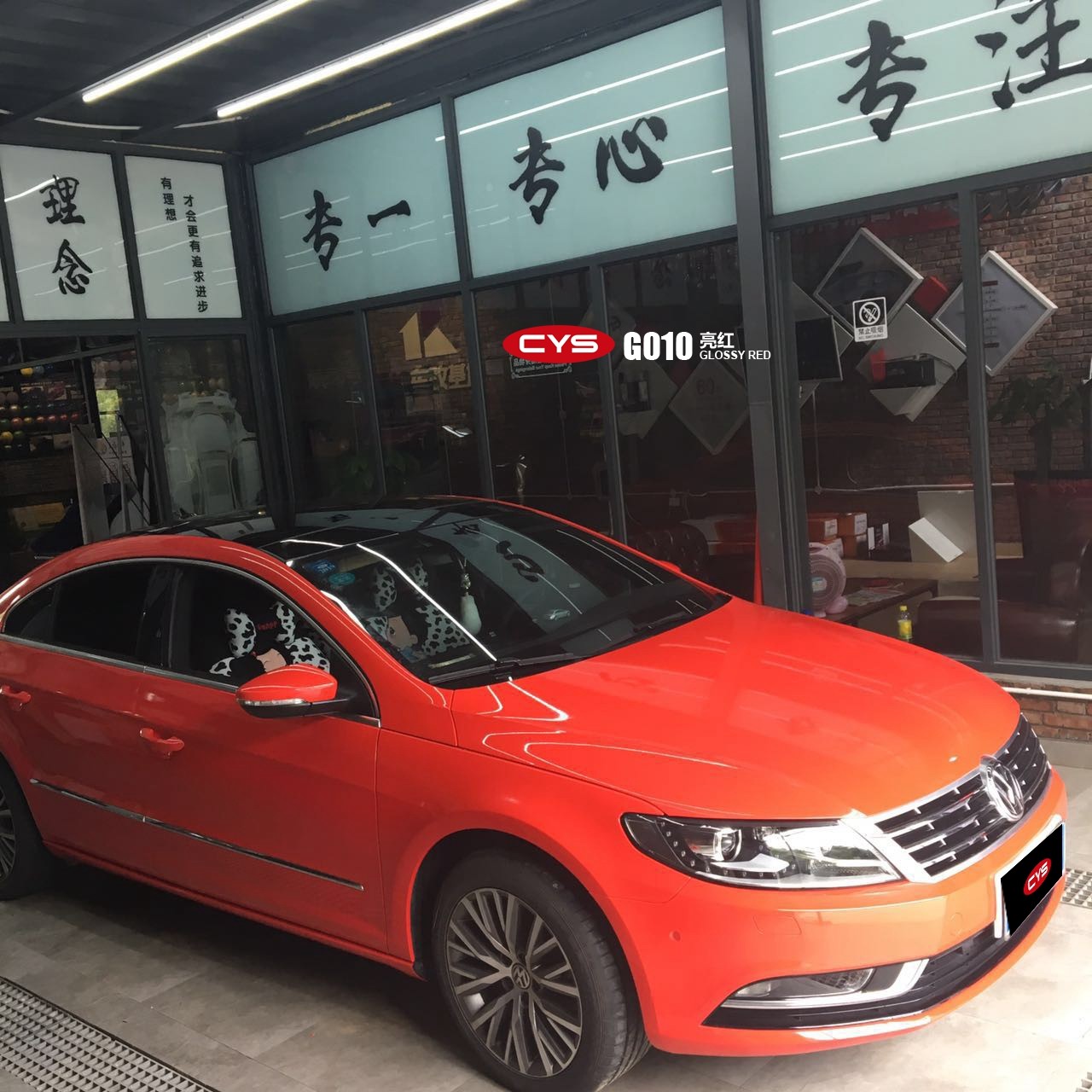 成都車衣裳大眾CC亮紅車身改色貼膜