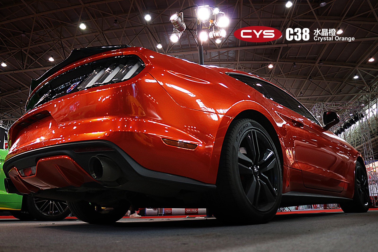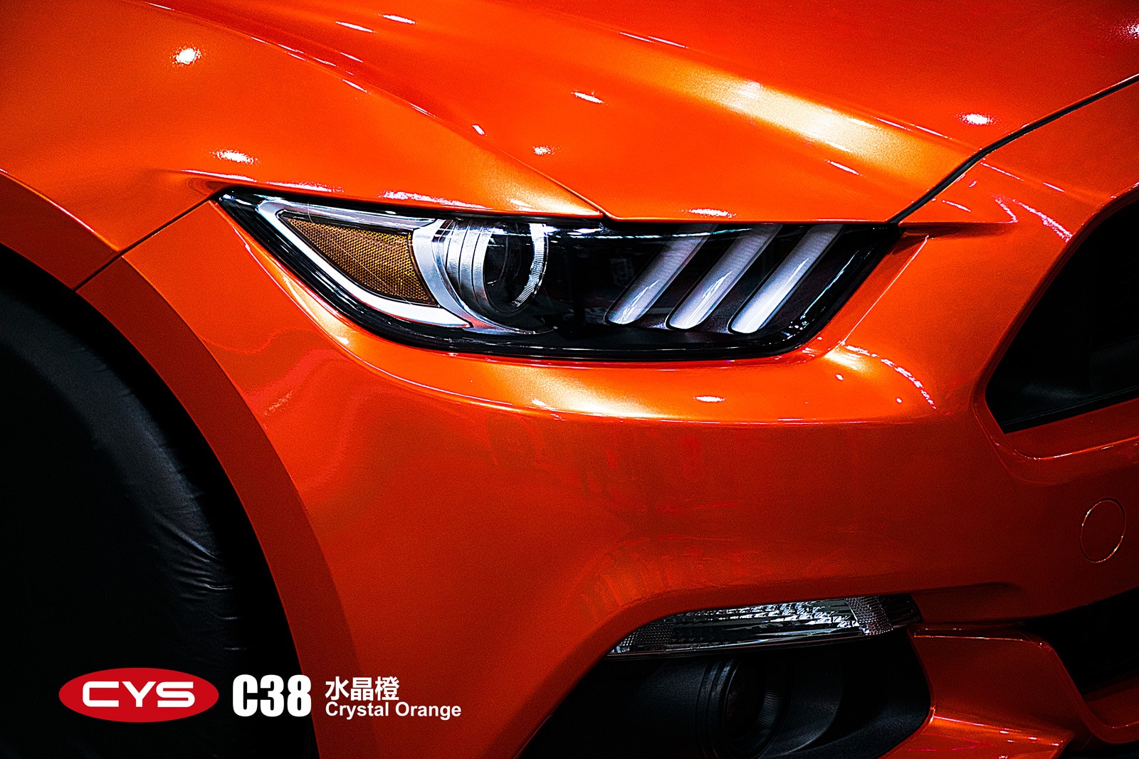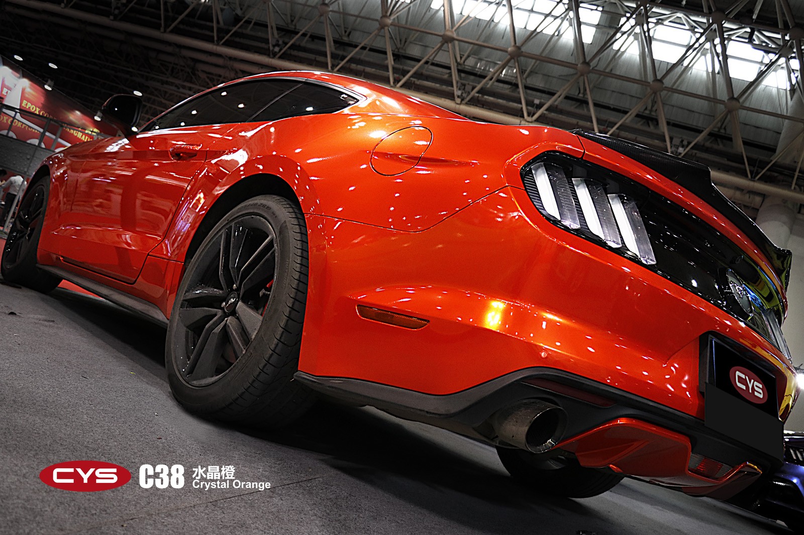 成都車衣裳福特野馬水晶橙車身改色貼膜