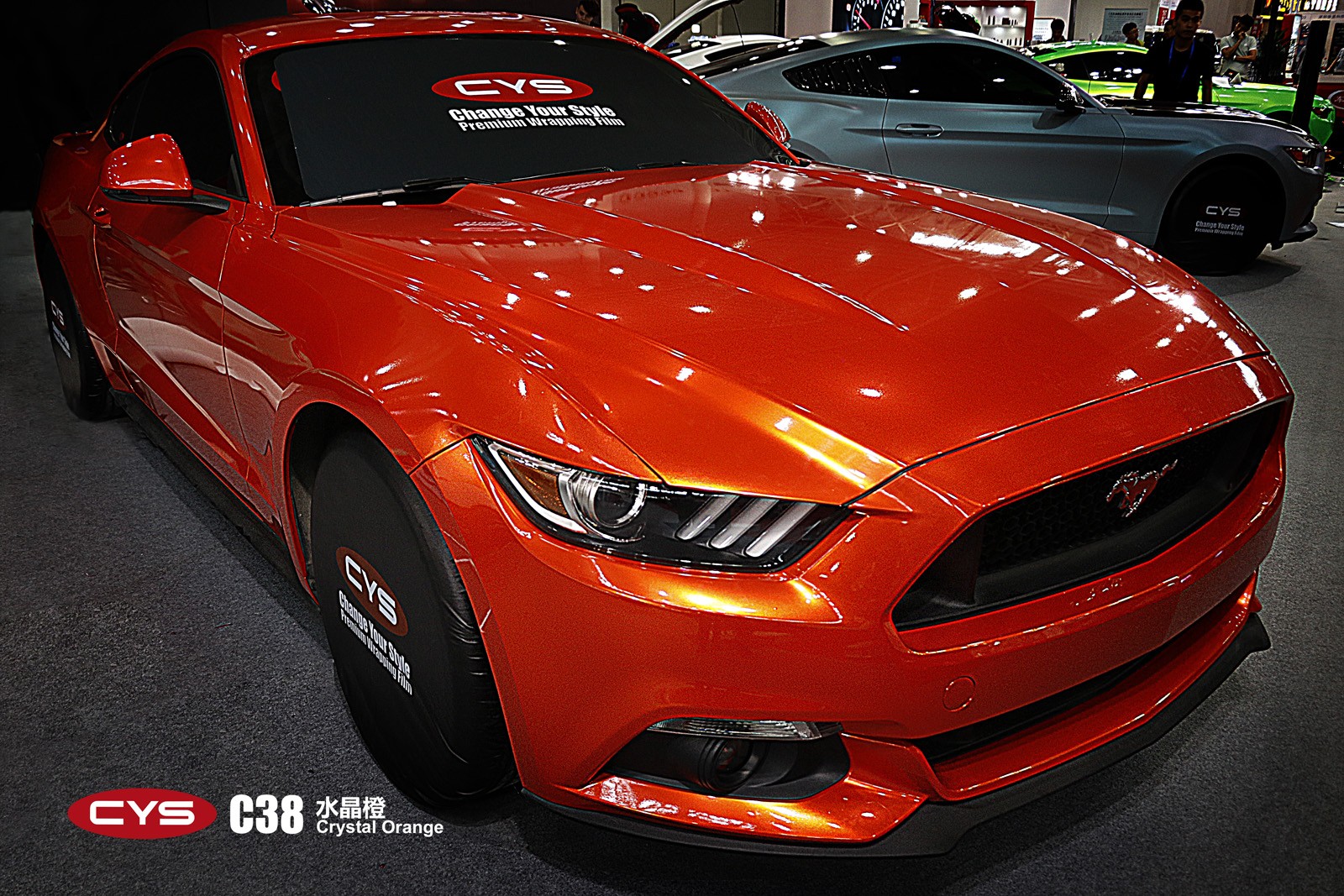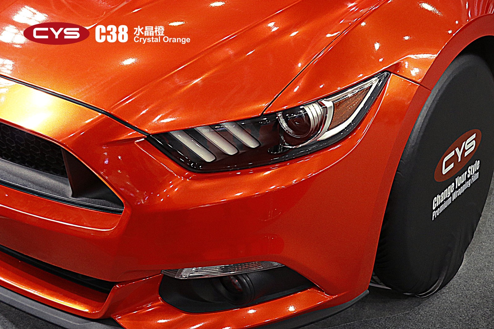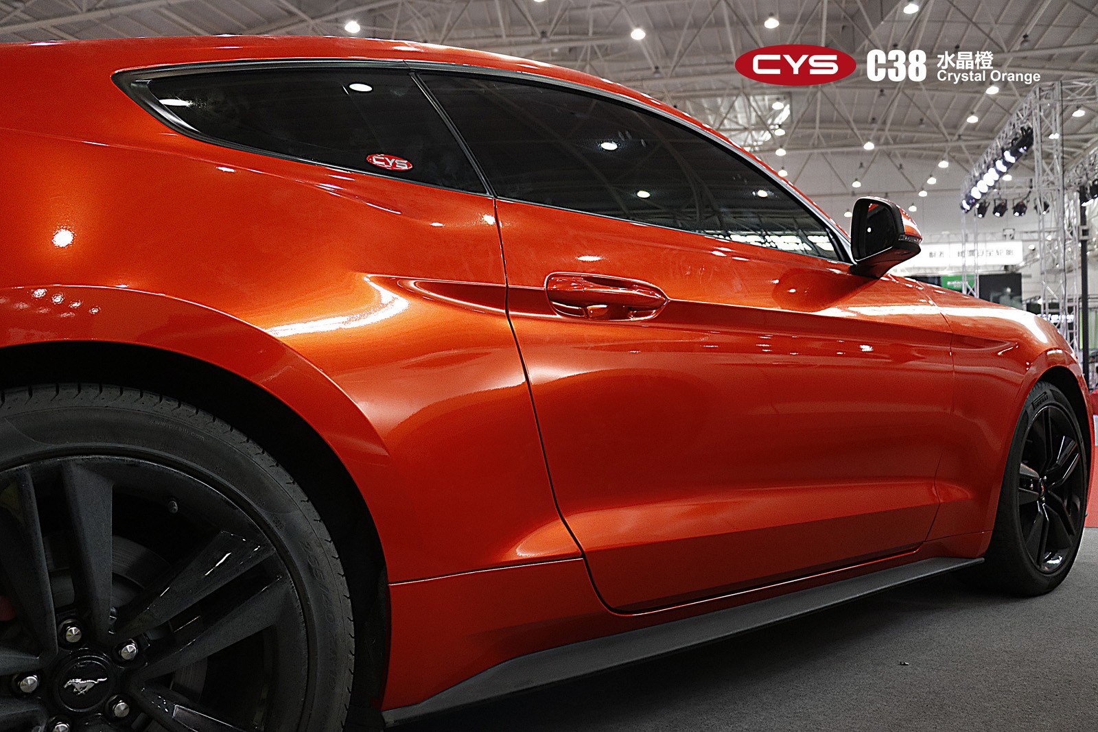成都車衣裳福特野馬水晶橙車身改色貼膜