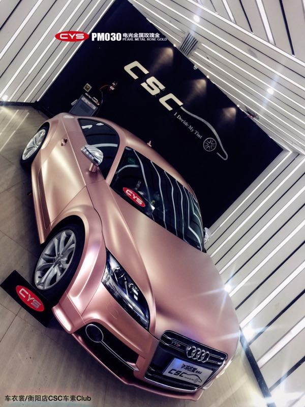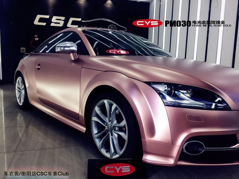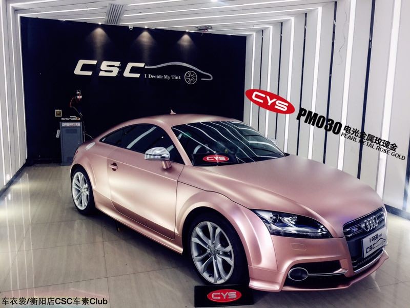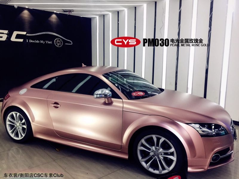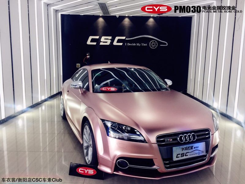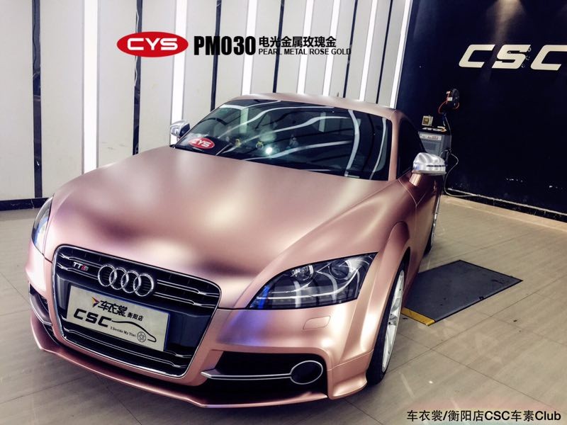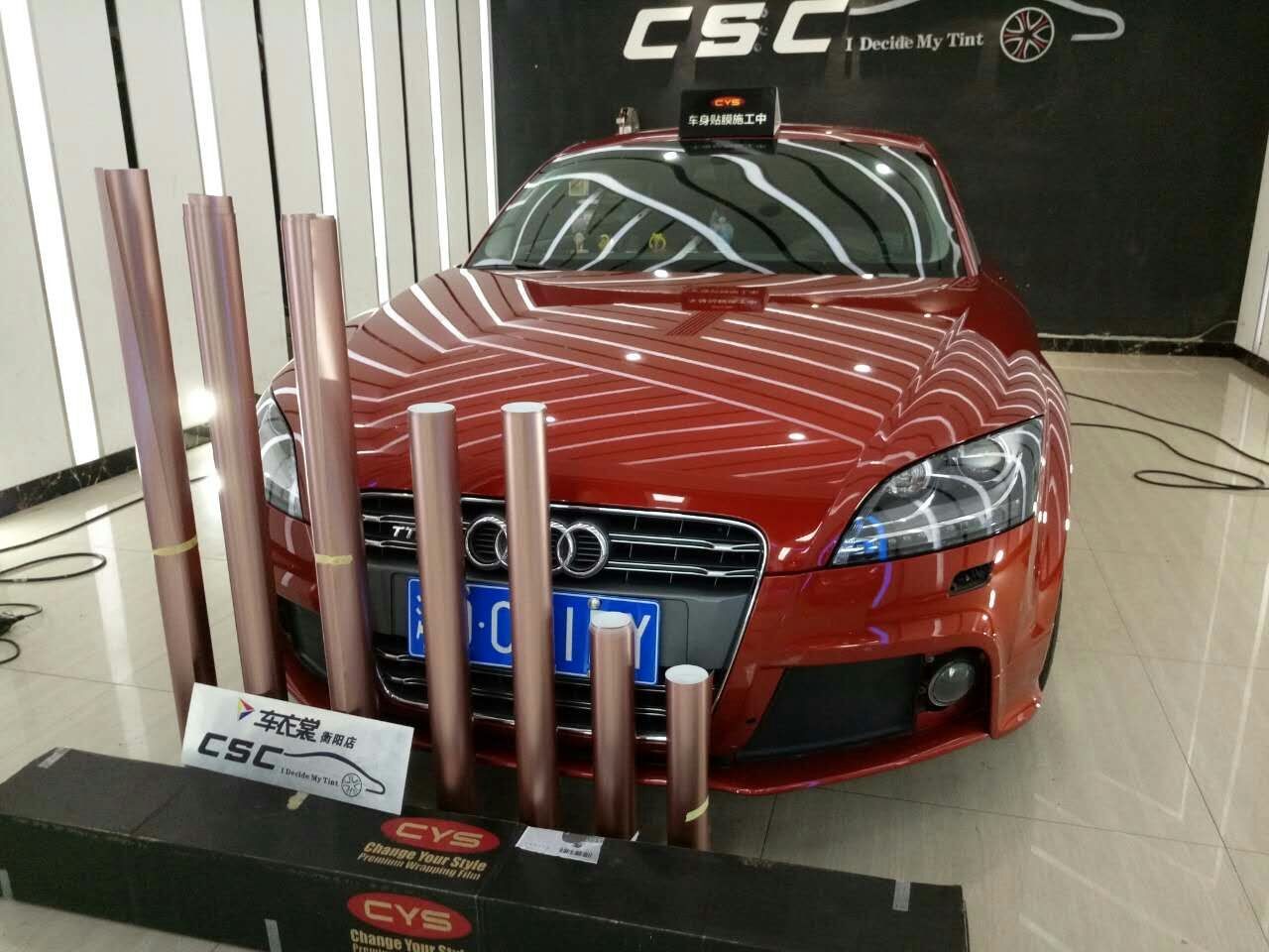 成都奧迪TT電光金屬玫瑰金車(chē)身改色貼膜