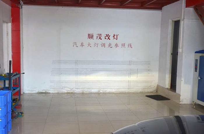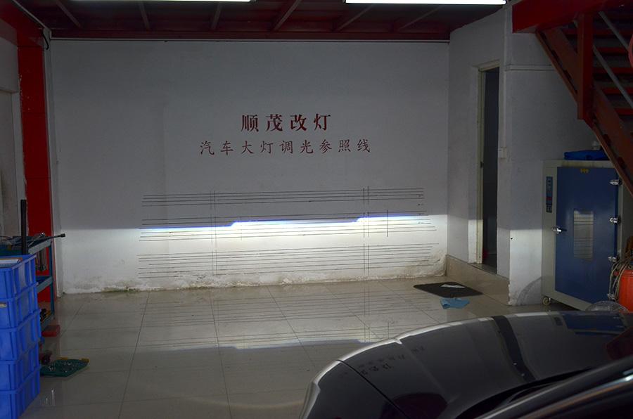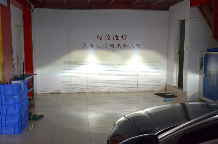 原車燈光效果,由于大燈使用時(shí)間較長(zhǎng),透鏡及燈泡老化嚴(yán)重,亮度下降較多