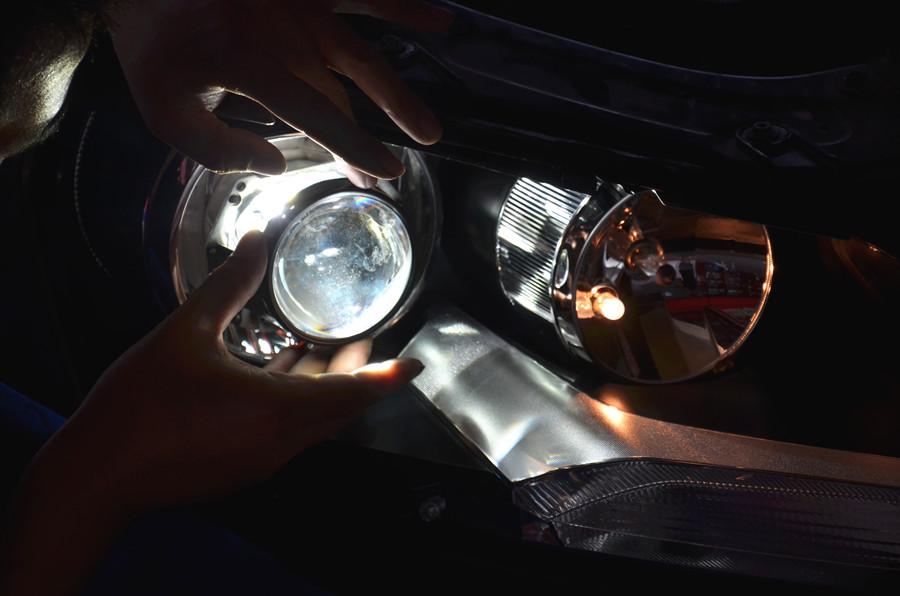 由于原車使用冷膠密封,開燈溫度較高,需要做好保護