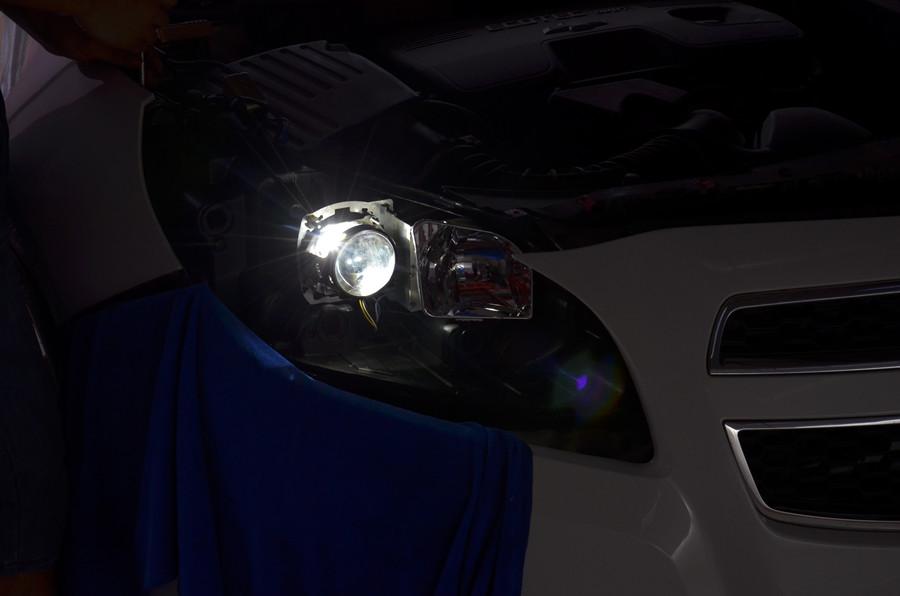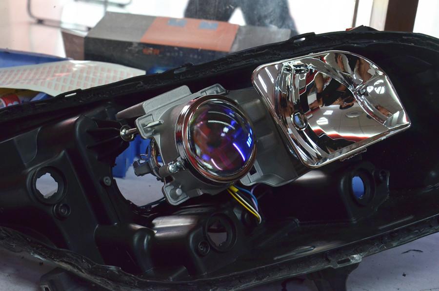 邁銳寶受制于變速箱的懶惰,與運動倆字并不沾邊;不過在舒適度上的表現卻非常不錯,無論是開著還是坐著都沒那么累。原車為低配款,遠近光均為普通鹵素燈,近光加單光透鏡,常走夜路始終覺得燈光不夠用,聽了朋友們建議單獨把近光鹵素燈泡換成氙氣燈泡,須不知鹵素燈和氙氣燈的發(fā)光焦點不一樣,所以在透鏡的反光碗設計上也會有區(qū)別,鹵素燈的透鏡直接加氙氣燈聚光焦點不對,會出現燈光發(fā)散,亮度降低和切割線亮度不均勻的情況,并且也沒辦法實現遠近光燈的轉換,對效果的提升不明顯不說在夜間行車還會影響對面駕駛者的視線,而產生安全隱患,車主很是無語,只好來到專業(yè)改燈店來個雙氙組合才解決了各種問題,不得不說專業(yè)的事還得專業(yè)的人來做。
