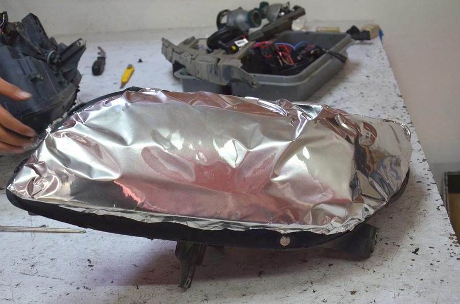 由于原車使用冷膠密封,開燈溫度較高,需要做好保護