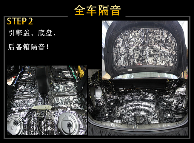 ?車主深知聽音環(huán)境的重要性,所以對(duì)引擎蓋、汽車底盤以及后備箱等區(qū)域進(jìn)行了隔音處理,不僅大大減少了噪音的侵入,還提升了車身的剛性。