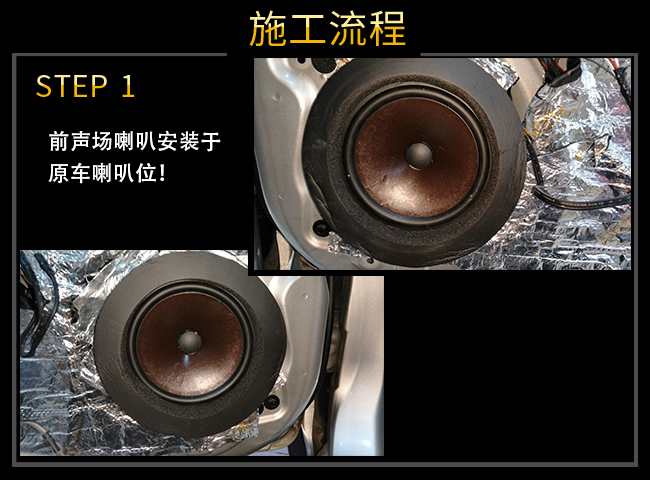 前聲場選用雷貝琴C6A喇叭作擔(dān)綱,對于不想大動干戈的車主來說,這款喇叭是個不錯的選擇,C6A音質(zhì)飽滿,靈敏度高,無需功放,原車主機便可以輕松推動,享受喇叭的動人音質(zhì)!