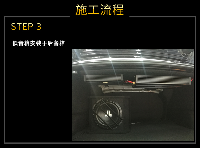 ?低音喇叭安裝于后備箱,為整個(gè)聲場(chǎng)提供震撼的低音下潛!