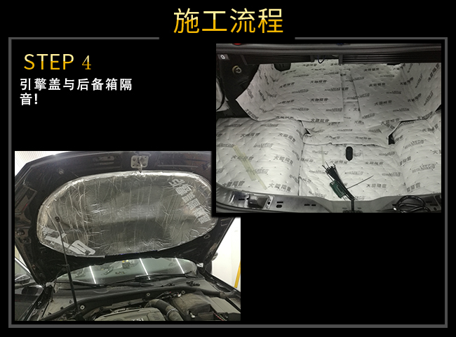 ?引擎蓋隔音能夠減少汽車行駛時(shí),發(fā)動(dòng)機(jī)的噪音。尾箱是相對(duì)密封的箱體,進(jìn)入的噪音在此會(huì)產(chǎn)生回音與共鳴,加大噪音的音量。后備箱使用隔音棉,,能強(qiáng)化尾箱鈑金結(jié)構(gòu),減少振動(dòng)及共振引擎的噪音,防止車體變形