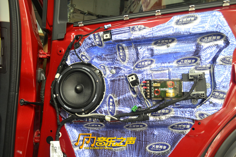 隔音是好聲音的基礎,門板隔音做好止震處理,增強門板鈑金強度的同時,有助于喇叭中低頻扎實好聽,同時可以起到隔音止震的效果!音樂之聲技術團隊一絲不茍的做好每個施工細節(jié),特制工具反復壓制,確保每一塊止震板都可以服帖完好的和鐵皮貼合!