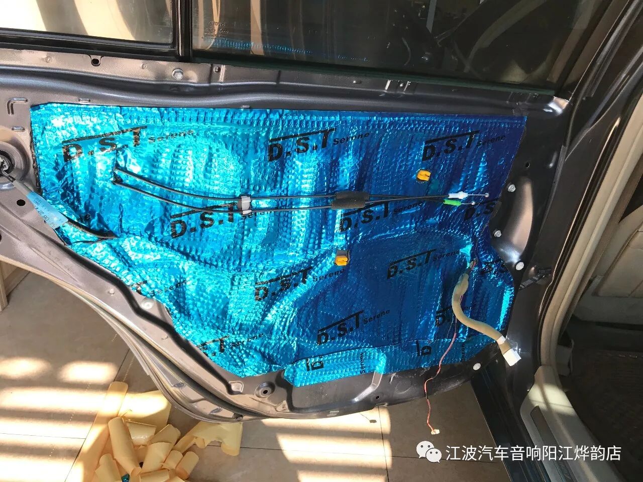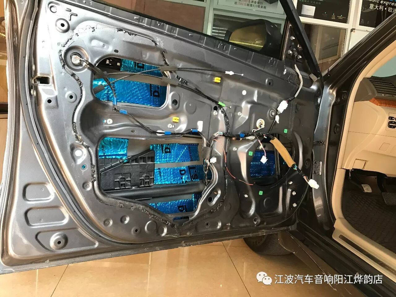 改裝音響每一步都要注重細(xì)節(jié),首先從隔音做起,門(mén)板做隔音就是為了給喇叭做一個(gè)好箱體,門(mén)板做了兩層隔音就形成一個(gè)箱體,隔音做好既可以形成一個(gè)箱體又可以抵消行車時(shí)產(chǎn)生的共振。