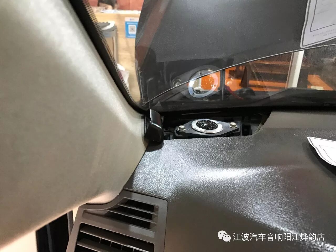 高音喇叭安裝在儀表臺(tái)上面,原裝位置安裝。