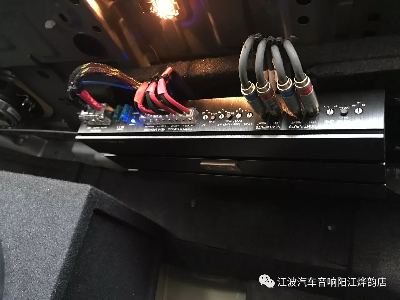 功放的安裝,也是需要固定好。功放安裝在后尾箱吊頂,這樣既完美又方便了調(diào)音。