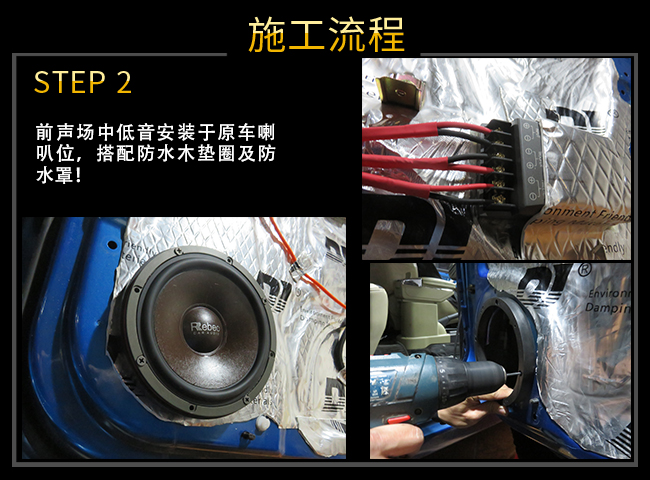 前聲場安裝雷貝琴P6A中低音,平衡性較好,能適應(yīng)不同的音樂,無論是動態(tài)、分析力還是音場等方面均表現(xiàn)上乘。并且安裝防水木墊圈,不僅能延長喇叭壽命,還能保證氣密性!