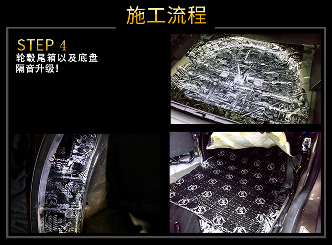 車主為了更好的聽音體驗,輪轂、尾箱以及底盤均進(jìn)行了隔音處理,防止噪音的入侵!