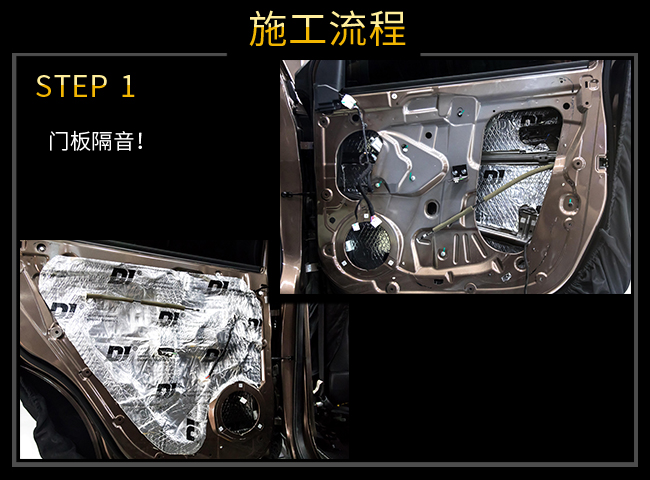 原車門板上那一張薄膜可以防止雨水流進(jìn)車內(nèi),但是阻止不了噪音傳入駕駛艙。將DJ隔音貼在門板鈑金上,加強(qiáng)鈑金厚度,可以抑制門板共振異響!