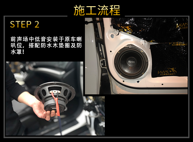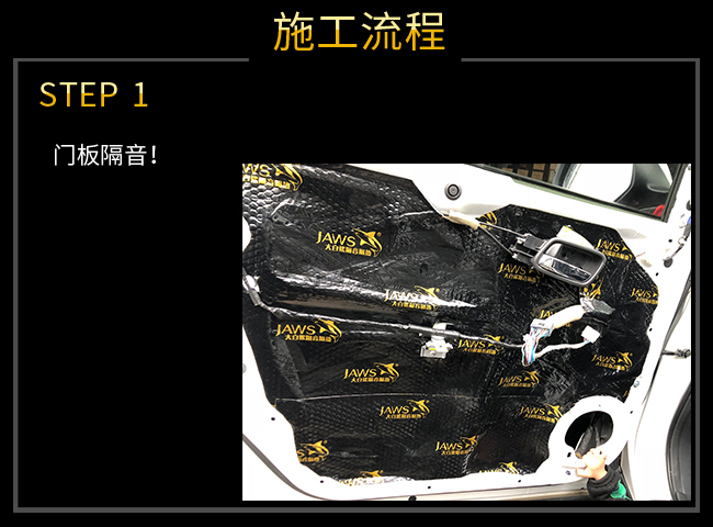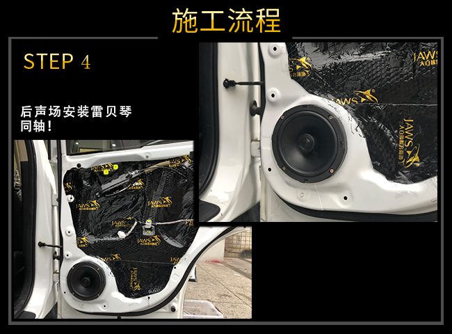 前車門進行隔音處理,有效阻隔外界噪音傳入,封閉的車門腔為喇叭提供了一個音箱箱體,使喇叭的性能得到充分發(fā)揮,尤其對改善聲場的中低頻效果作用巨大!